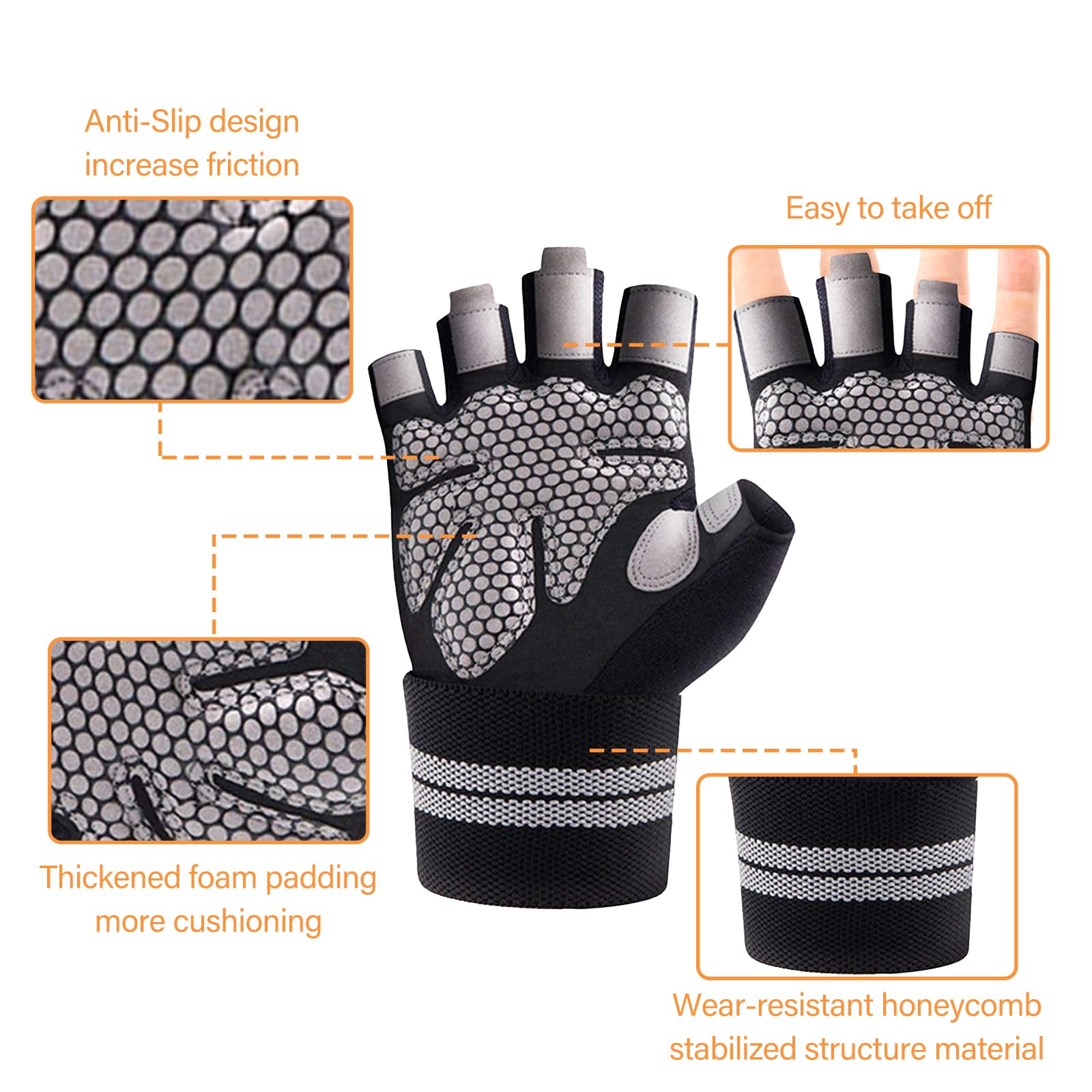 aifitbre Workout Gloves for Men Women, Breathable Weight Lifting Gloves with Wrist Wraps Support for Gym, Exercise, Training and Fitness, Fingerless, Padded Full Palm Protection