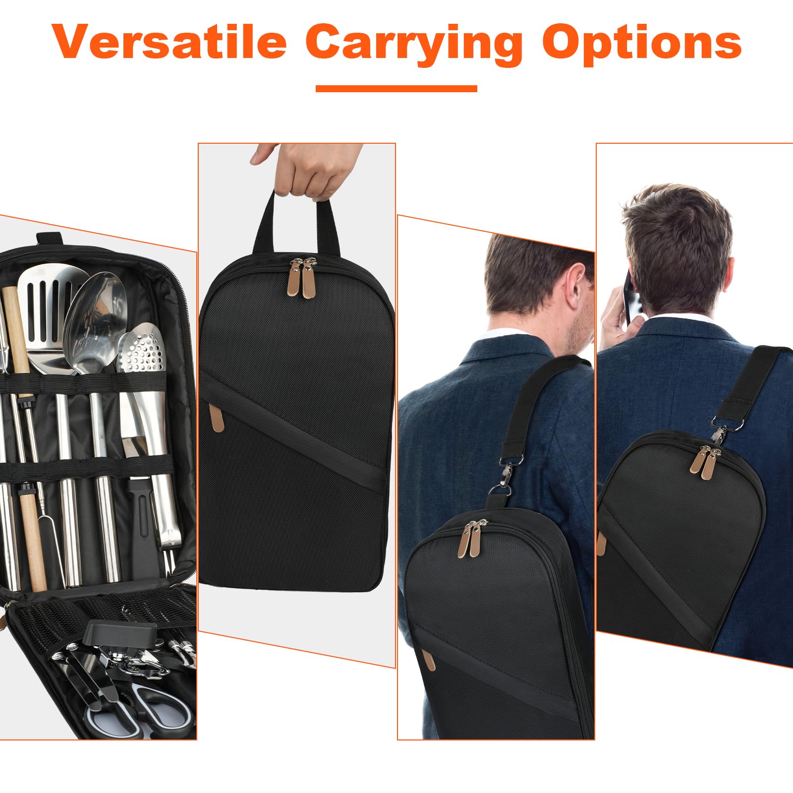 - Ultimate Organization: Our 3-layer storage system keeps your utensils neatly organized and protected from the elements. Made with durable Oxford Woven Fabric and a water-resistant PVC coating, this compact backpack ensures everything stays safe during your outdoor adventures.