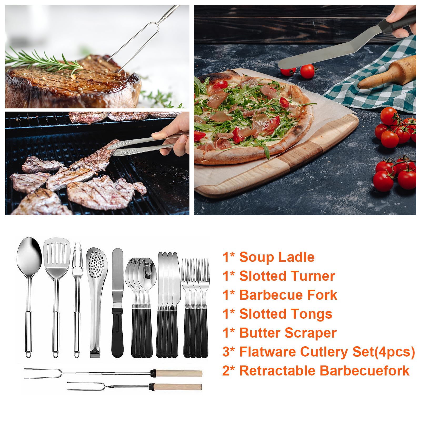 - Versatile Cooking Companion: Ideal for grilling, camping, picnics, or backyard BBQs, this set includes everything you need—from tongs and forks to spice shakers and cutting boards. Perfect for any outdoor cooking scenario!