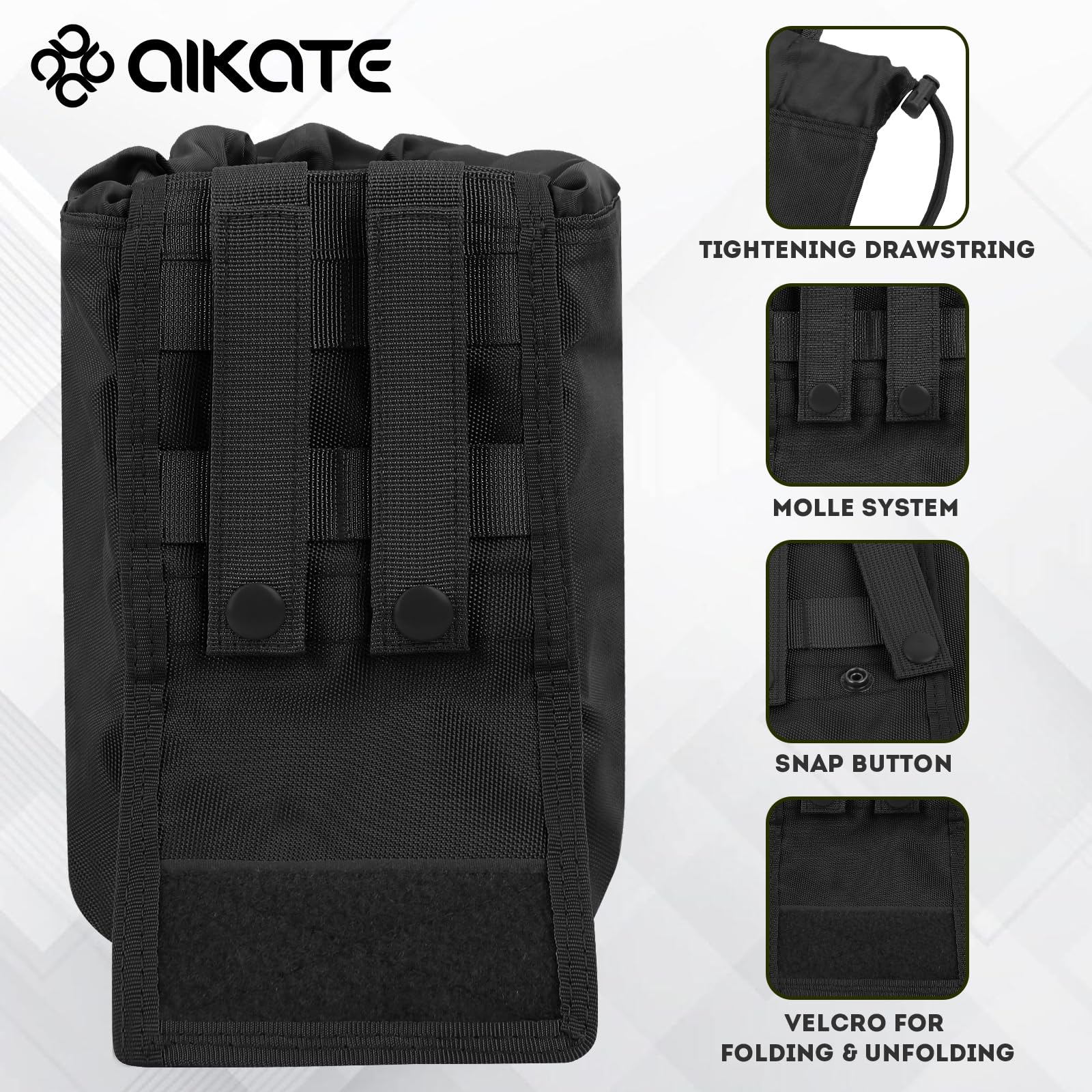 AIKATE Tactical Molle Dump Pouch, Roll-Up Drawstring Magazine Utility Pouch, Folding Dump Bag (Black)