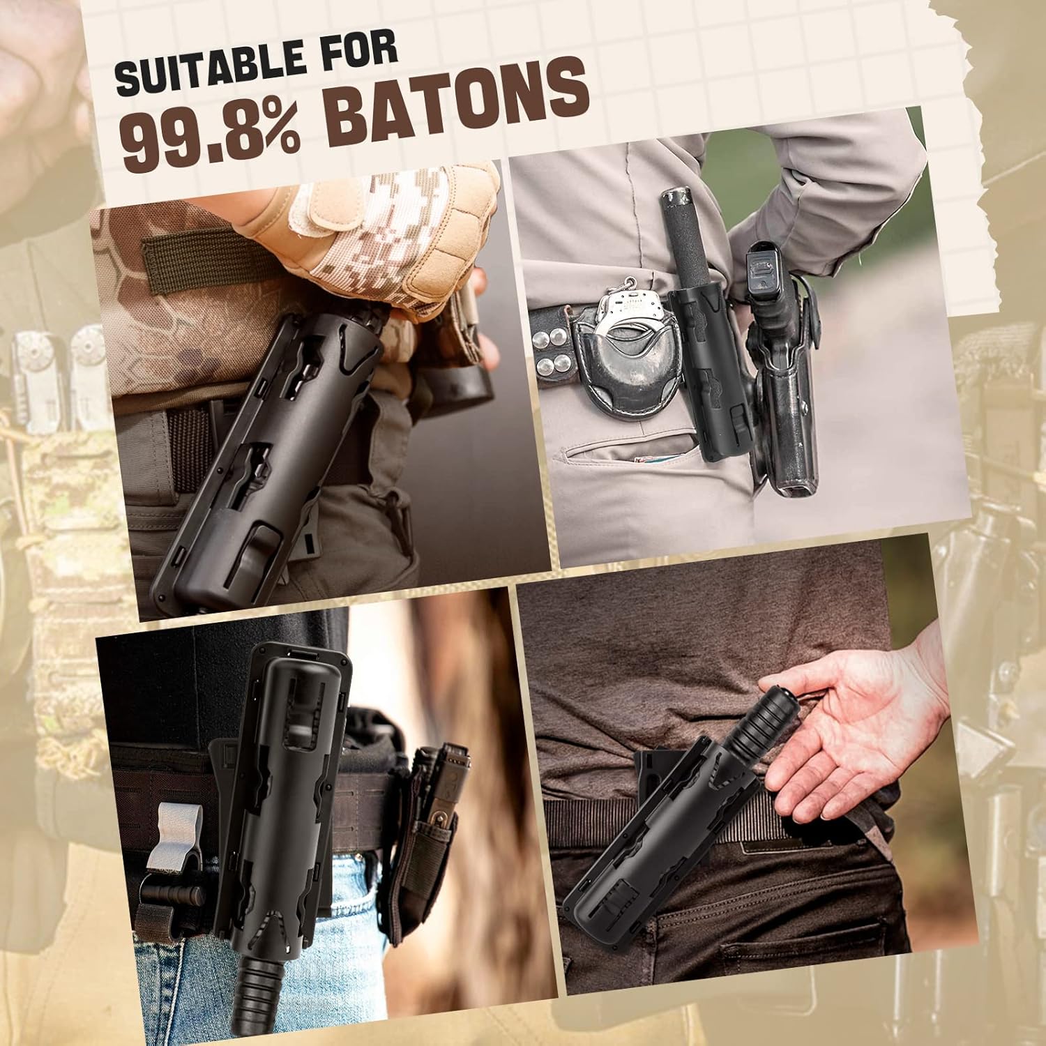 - Expandable baton holsters are easy to assemble and disassemble. Rotate the switch to unlock, easily buckle the belt, no need to unlock the belt.