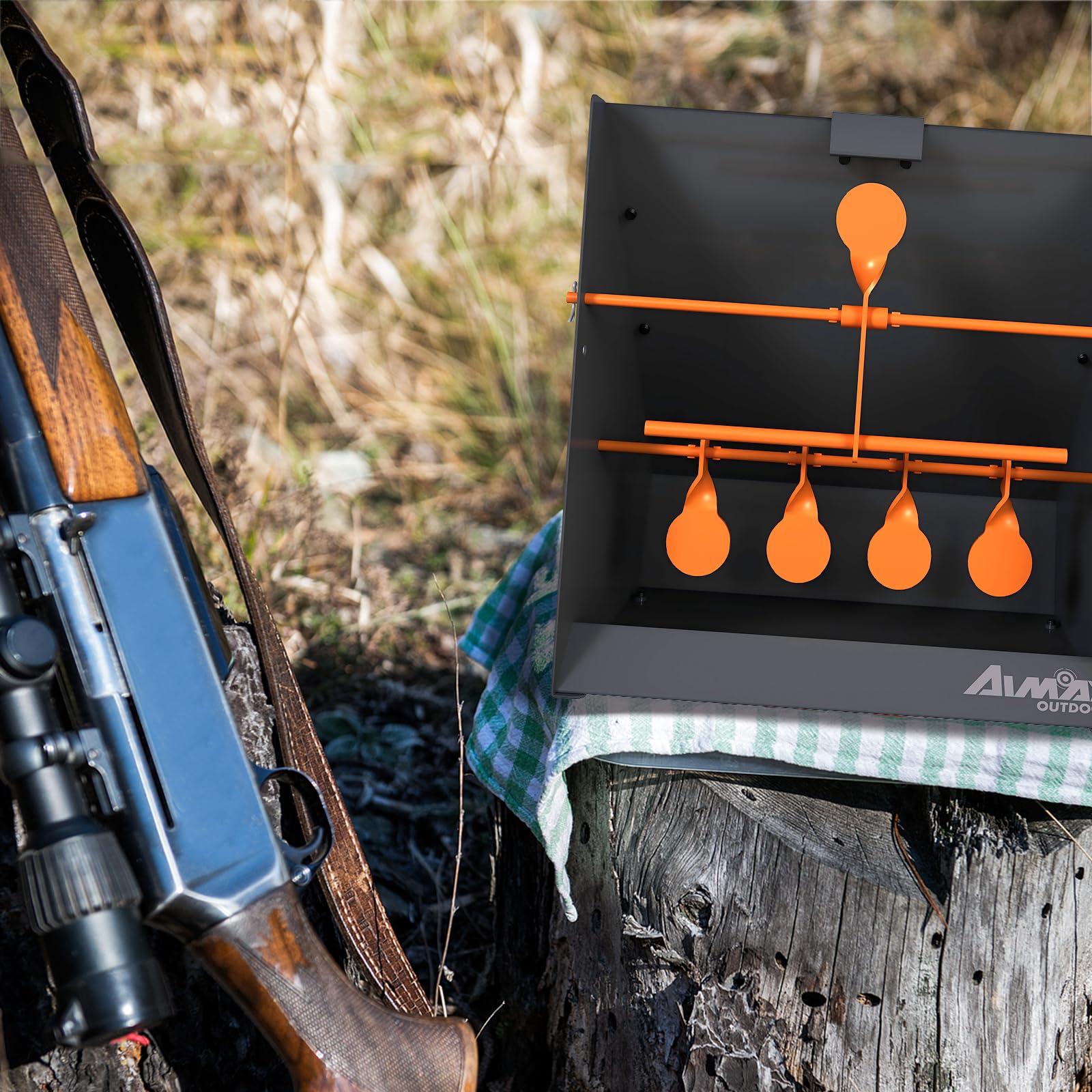 AIMAX OUTDOOR Pellet Gun Target Trap with Center Shot - 12pcs Paper Targets and 4 Resetting Metal Shooting Targets for Airgun, Rifle, Rimfire, Perfect for Backyard, Outdoor, Indoor Shooting Practice