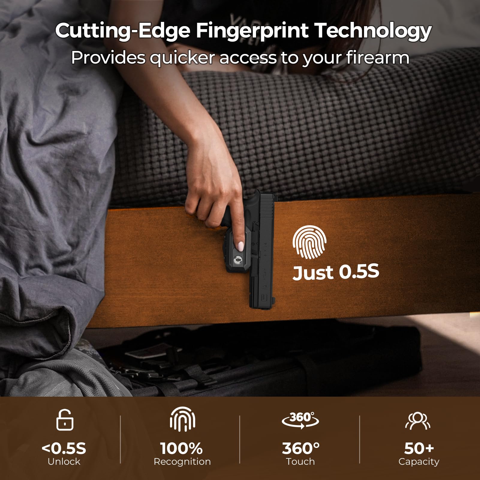 - Ultra-Secure Biometric Technology: The fingerprint trigger lock combines speed and security. It unlocks instantly with the innovative 508 DPI high-resolution biometric sensor. The pistol lock stores up to 50 fingerprint scans and offers three unlocking methods, adapting flexibly to various scenarios