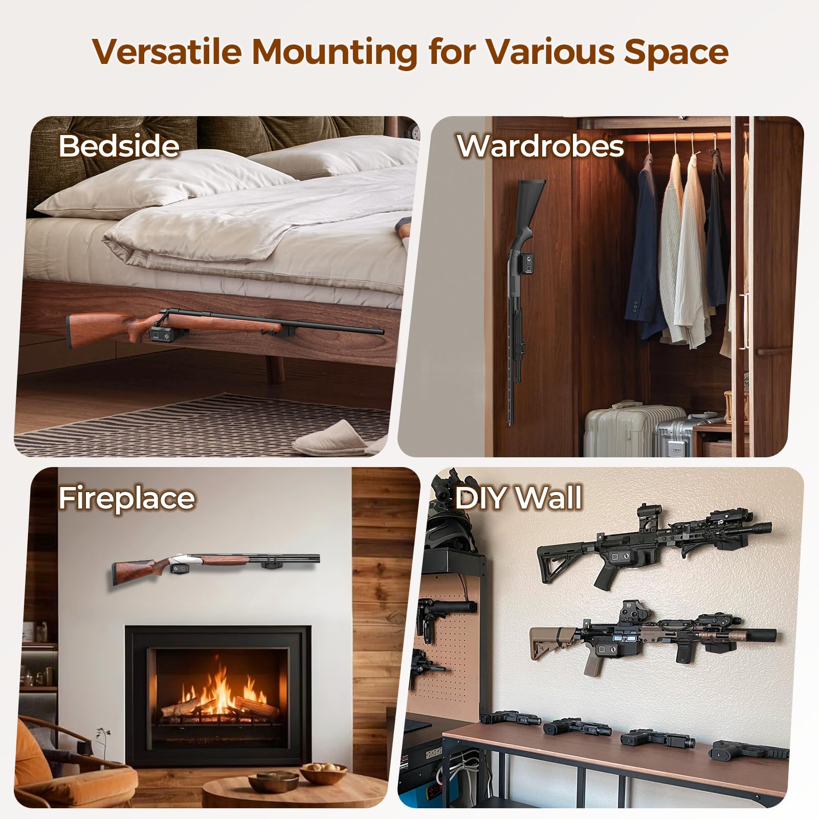 - Quick & Easy Installation: This user-friendly gun mount for wall allows for quick setup on various wall types. With clear instructions and minimal tools needed, you can securely mount your firearms in just minutes. The package includes multiple sets of screws for added convenience