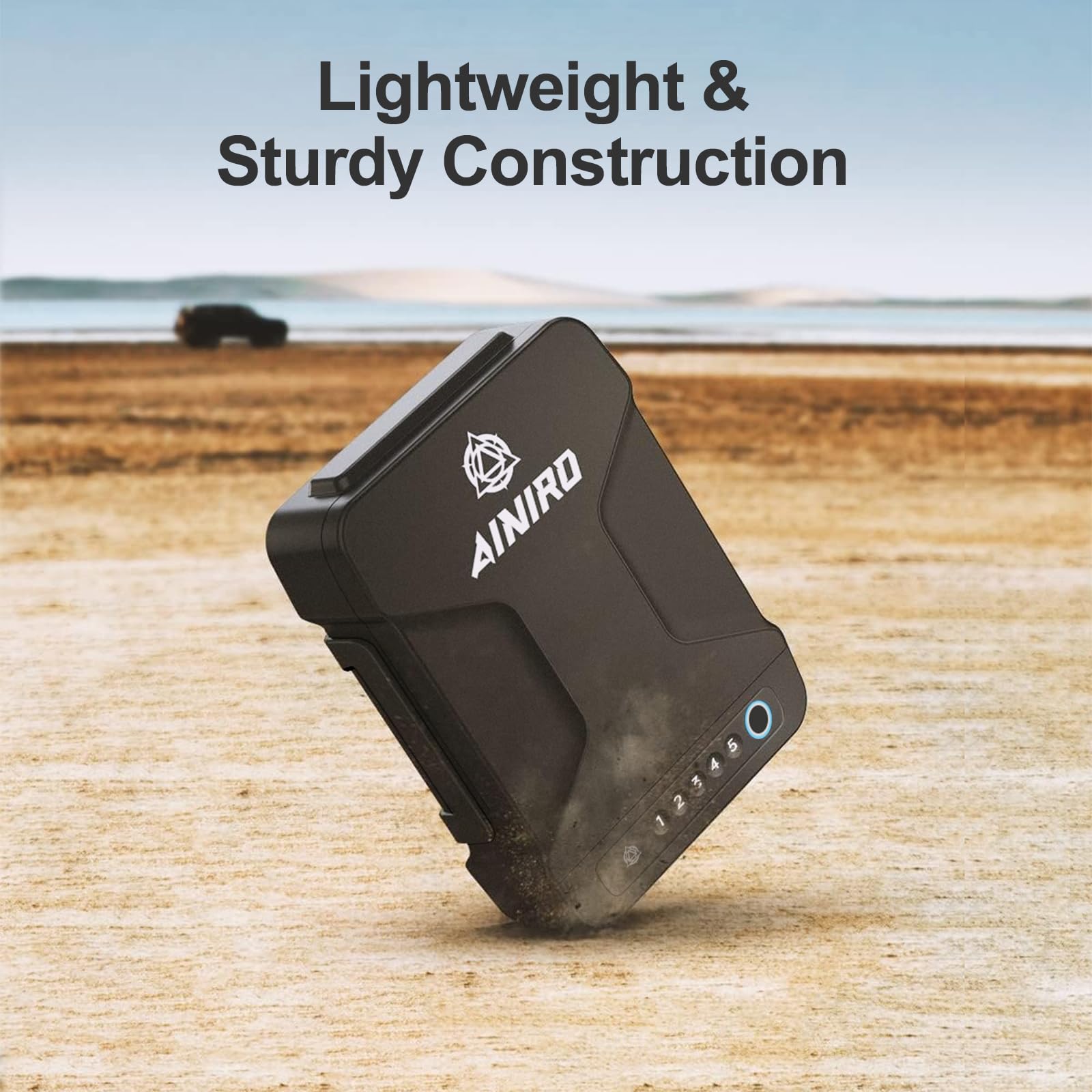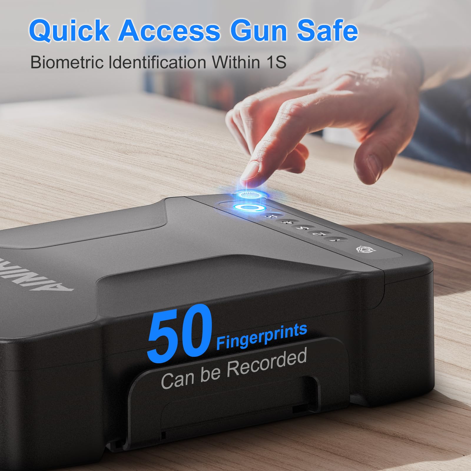 AINIRO Gun Safe for Handgun, Small Biometric Gun Safe with Built-in Handle Gun Lock Box for Pistols with Fingerprint, Keypad and Key Unlock Pistol Safe for Home, Car, Truck, Bedside Nightstand