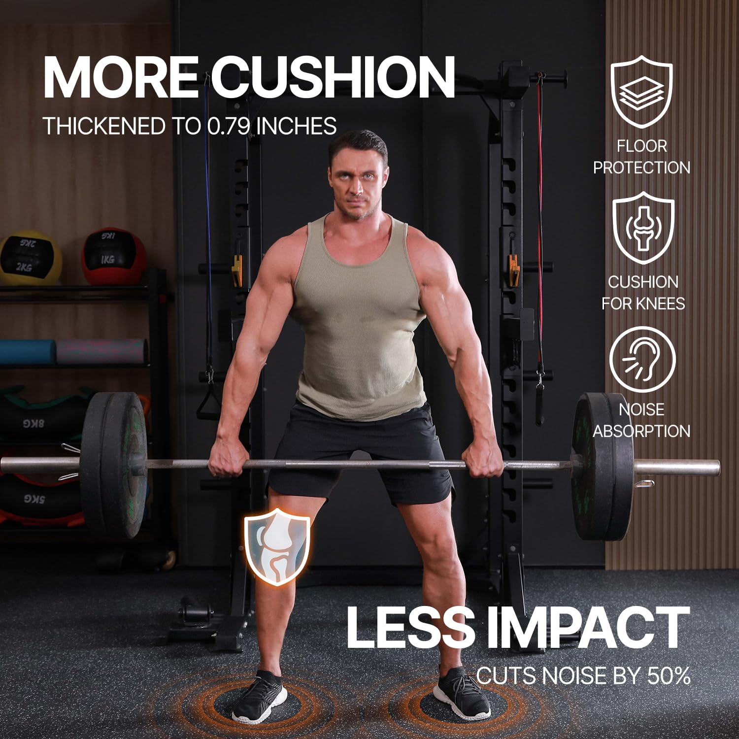 - [Easy to Assemble and Detach]: 12 tiles (24" x 24" x 0.79" each), covers 48 sq ft (8 × 6 ft). Upgraded larger interlocking locks provide a secure fit, preventing any separation during use, ensuring you can work out without concerns of shifting. Simple assembly and detachment make it effortless to set up your home gym.