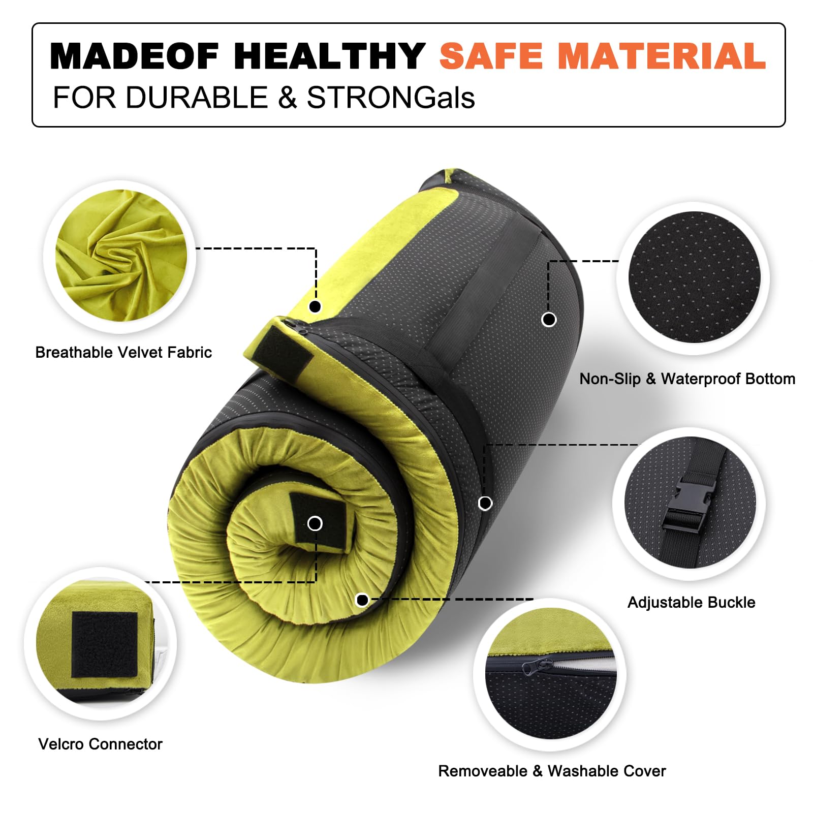 - Safe and Odorless: Ideal for camping trips, the Airpanda camping sleeping pad is both safe and odor-free. The soft-touch cover is OEKO-TEX certified for odor-free. Made from safe materials, including memory foam, high-density poly foam, and a plush fabric cover. The internal hydrostatic pressure 3000mmH2O waterproof capability of the camping pad cover means you don't have to worry about wet environments when using it outdoors, suitable for any outdoor and indoor activities