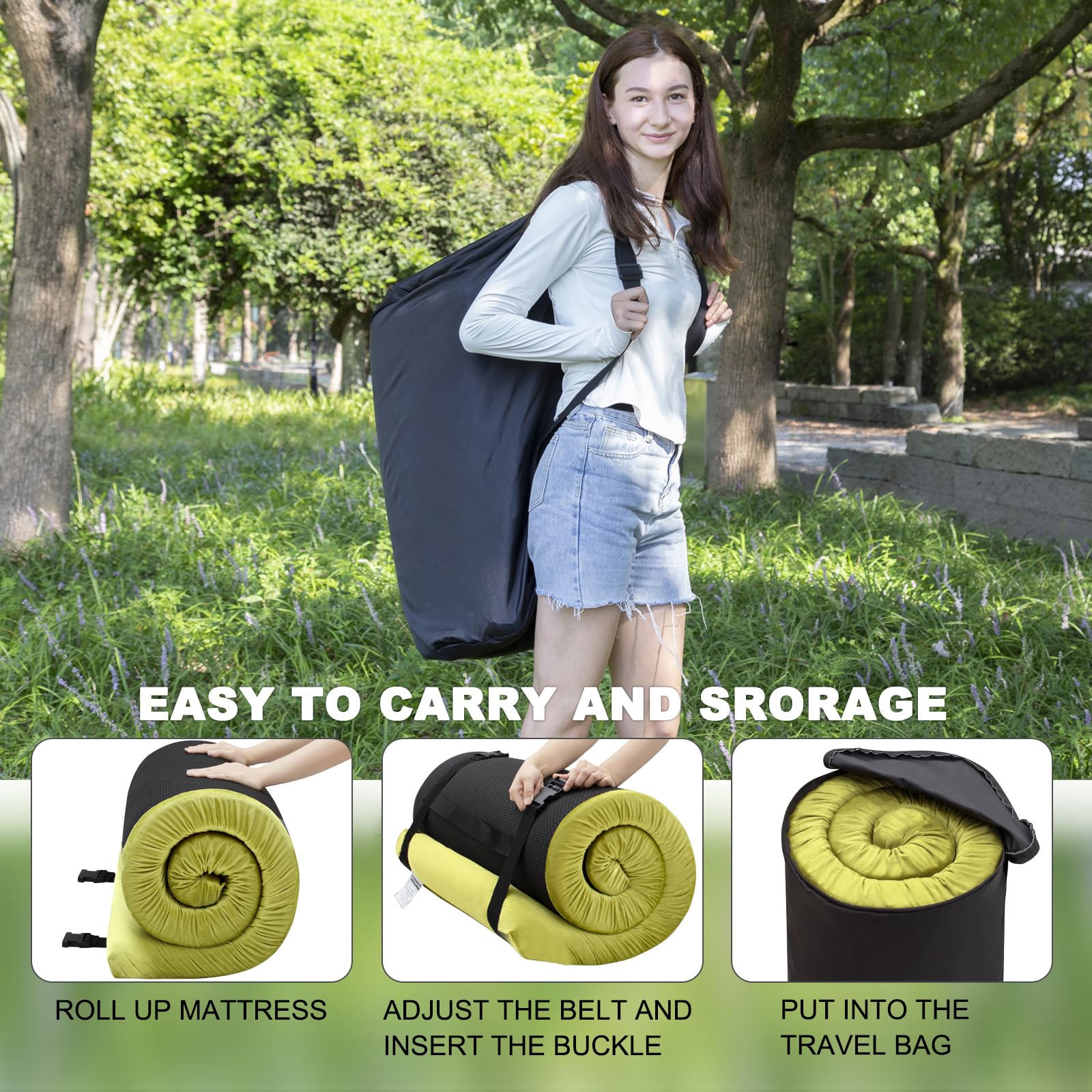 - Comfortable Memory Foam Camping Mattress: Upgrade your outdoor sleeping experience with the Airpanda Memory Foam Camping Mattress Sleeping Pad. This 3-inch thick mattress combines 1-inch 30D memory foam with 2-inch 40D high-density support foam, providing ultimate comfort and support. It contours to your body, ensuring a restful night's sleep even on rough terrain. Perfect for camping, traveling, or hosting sleepovers, the Airpanda camping mattress pad is versatile and reliable