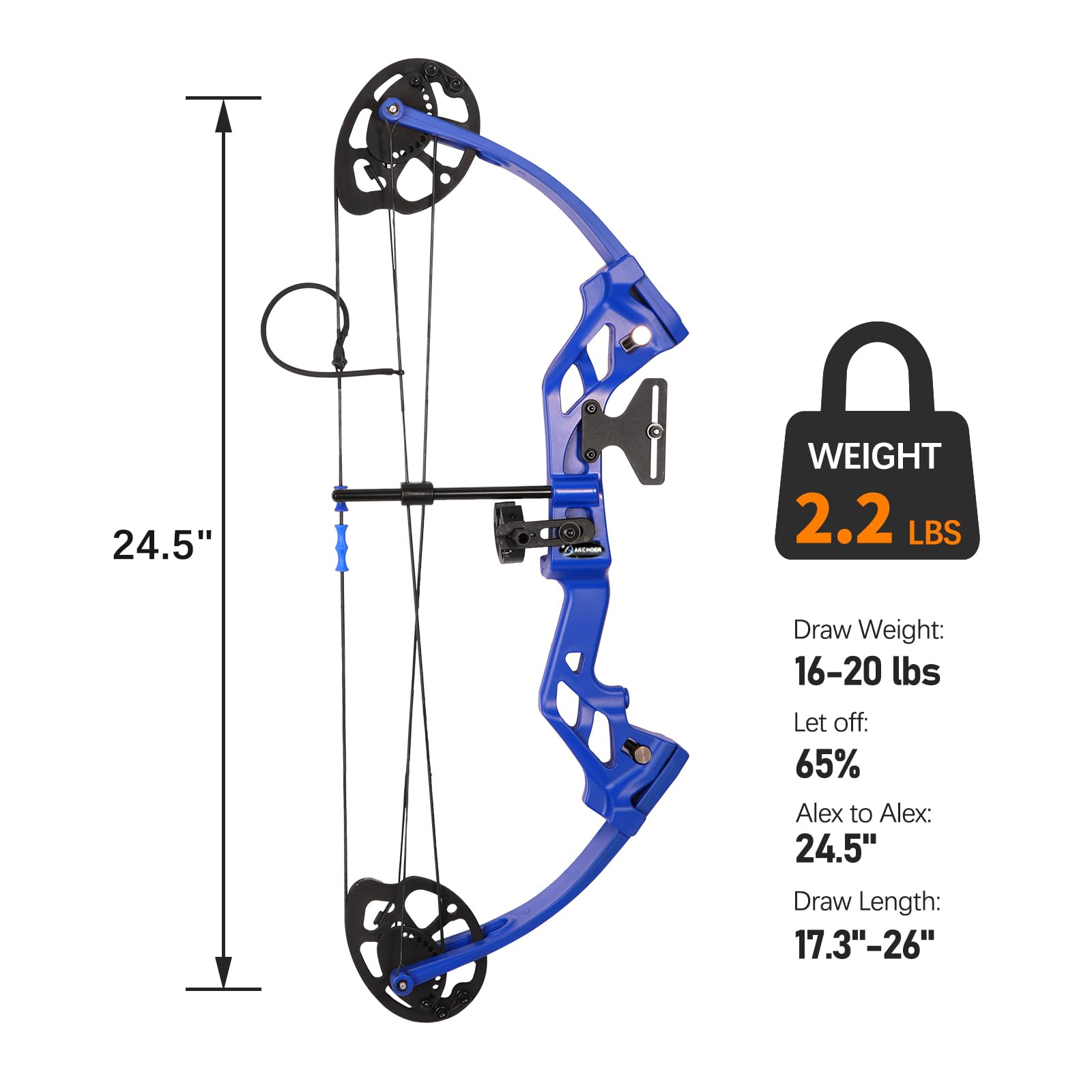 - BOW SPECIFICATIONS: 24.5" axle-to-axle; 16-20 lbs draw weight; 17.3"-26" draw length; 65% let-off; bow weight is 2.2 lbs, lightweight design. AKCHOER compound bow is a great gift for your family and friends.