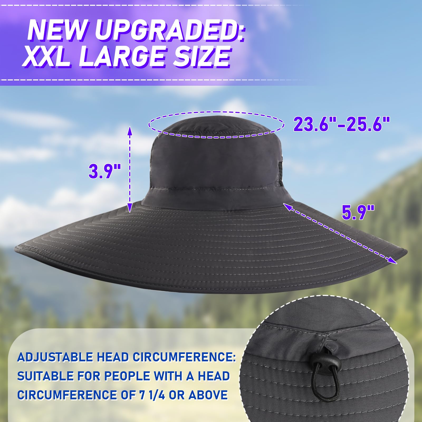 ALANGDUO XXL Big Head & Super Wide Brim Sun Hats for Men, Large Fishing Sun Hat UPF50+Waterproof Boonie Bucket Hat for Safari Gardening,Hiking, Beach Dark Grey