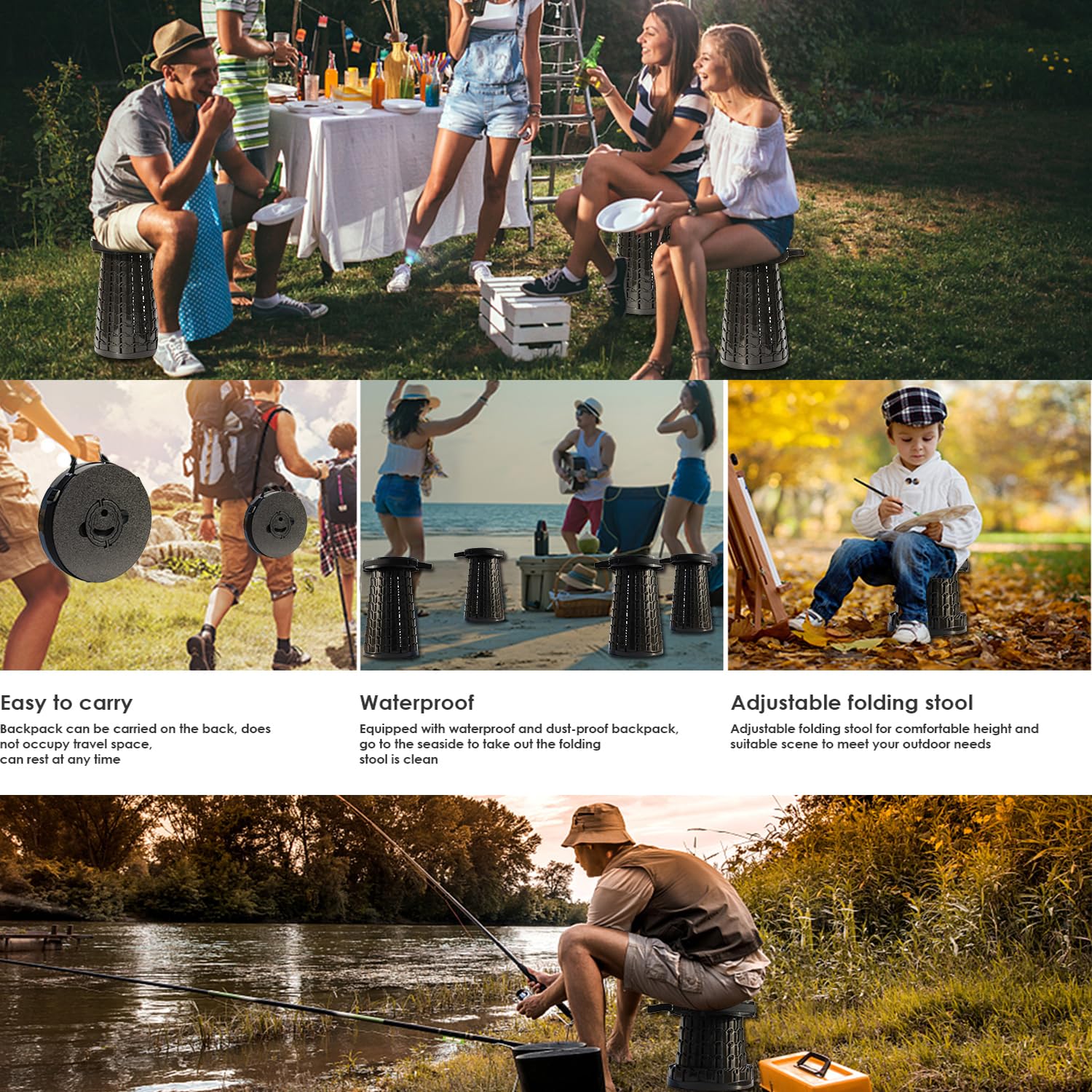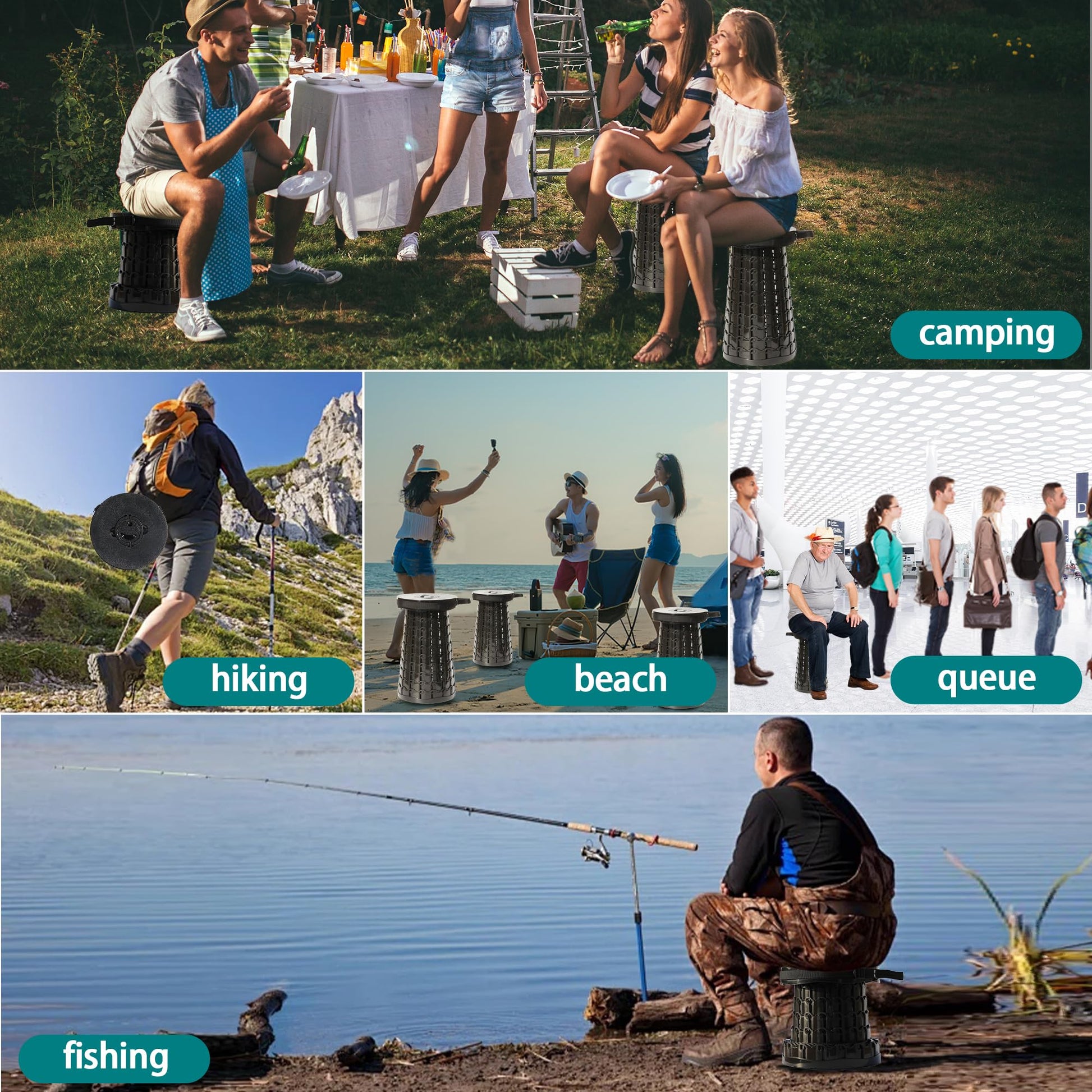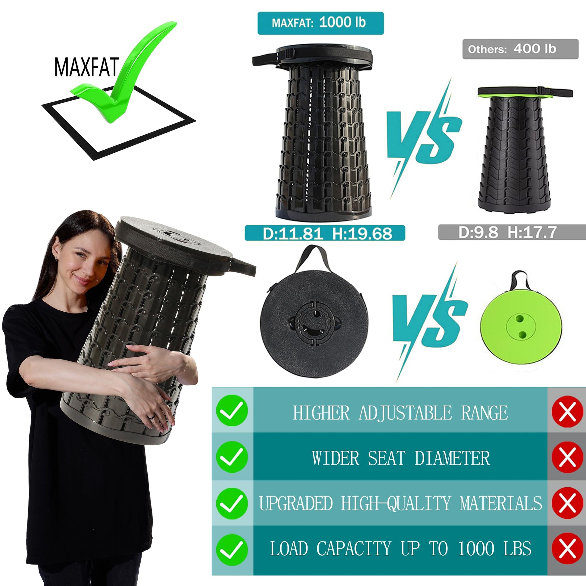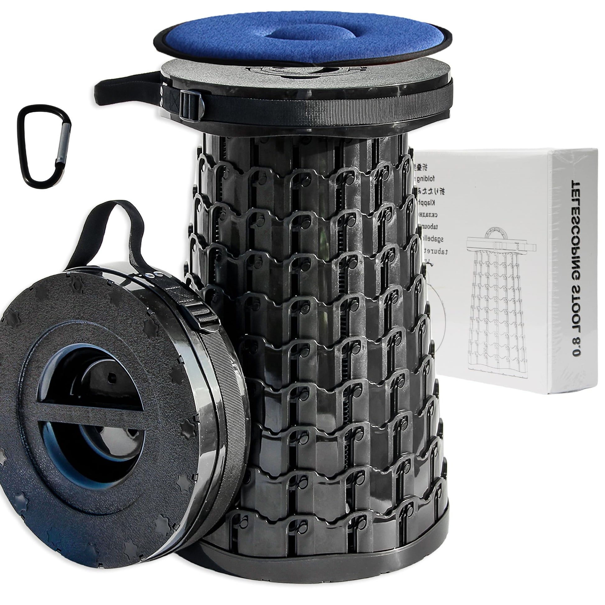 ALEVMOOM 2025 XXL 19.7" Collapsible Stool with Cushion, Capacity 1000lbs Portable Stools for Adults Heavy Duty, Adjustable Height Telescoping Folding Stool, for Outdoor Camping Travel Hiking Fishing