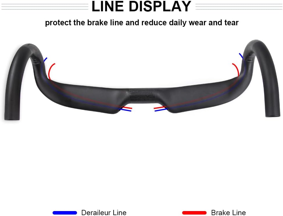 - 【Pro-design】This style is one of the standard mold of modern road racing bike,its tortuosity is especially made to fits the brake system, and in the position of the brake system, we prayed it with a layer of granule paint to increase the friction between the brake handle and the handlebar, providing you a safer and comfortable riding.