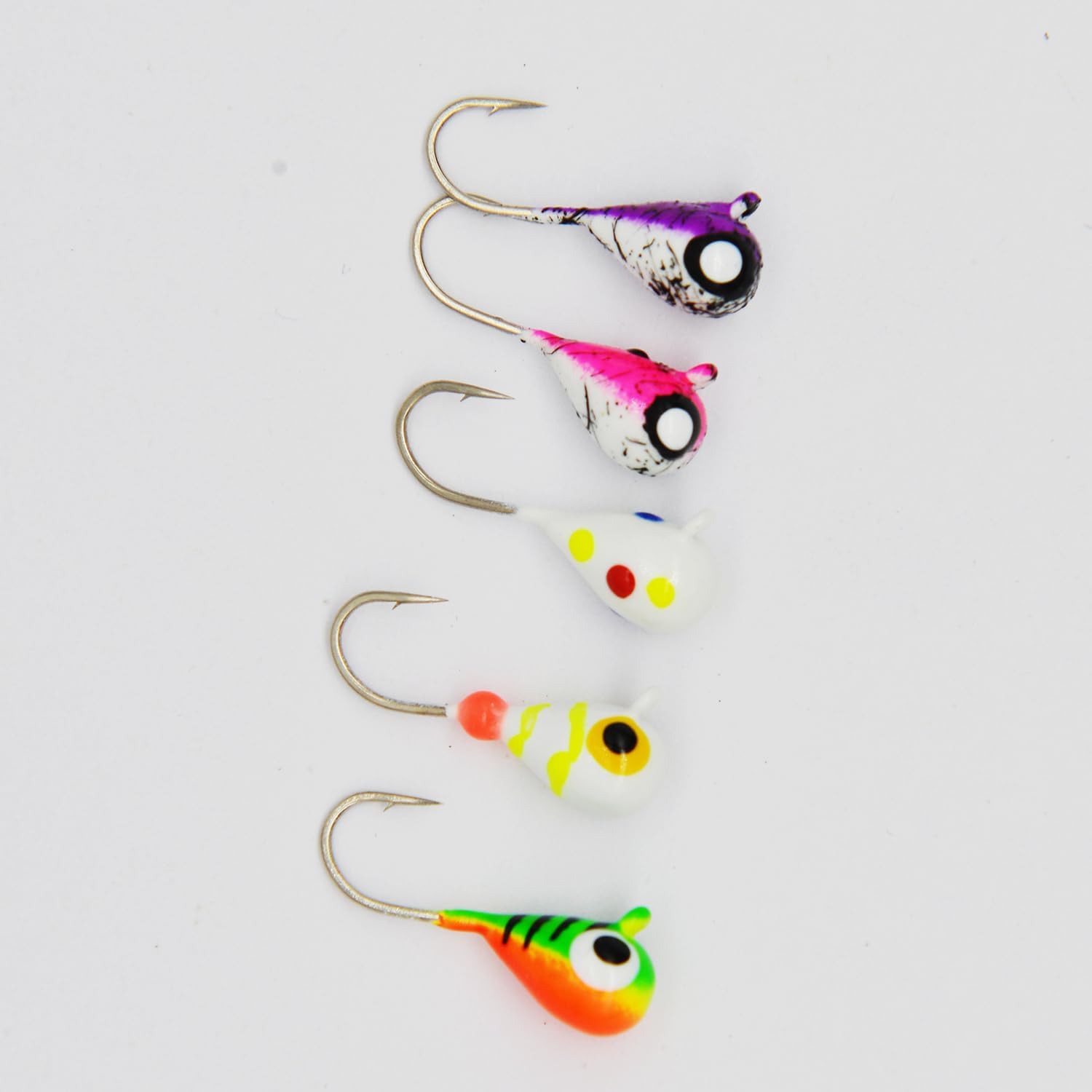 ALICHINO Ice Fishing Jig Set, 5pcs Tungsten Ice Jig Heads for Panfish & Crappie, Needle Point Hooks, 4MM Size