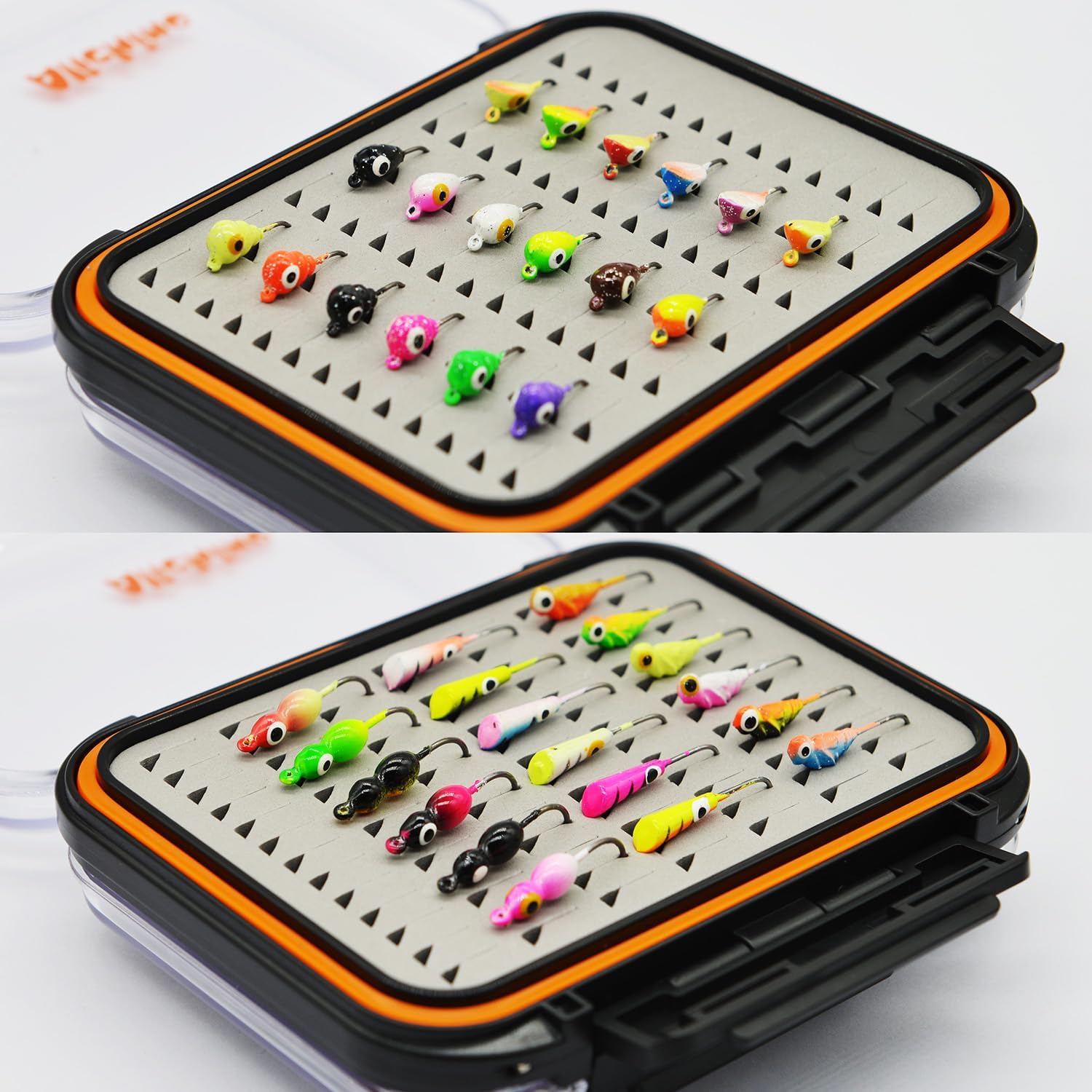 Alichino Ice Fishing Jig Set Ice Fishing Lures for Panfish Crappie, Ice Jig Head Hook Set (Lead ice jig Sets 6 Types 36 pcs with Box)