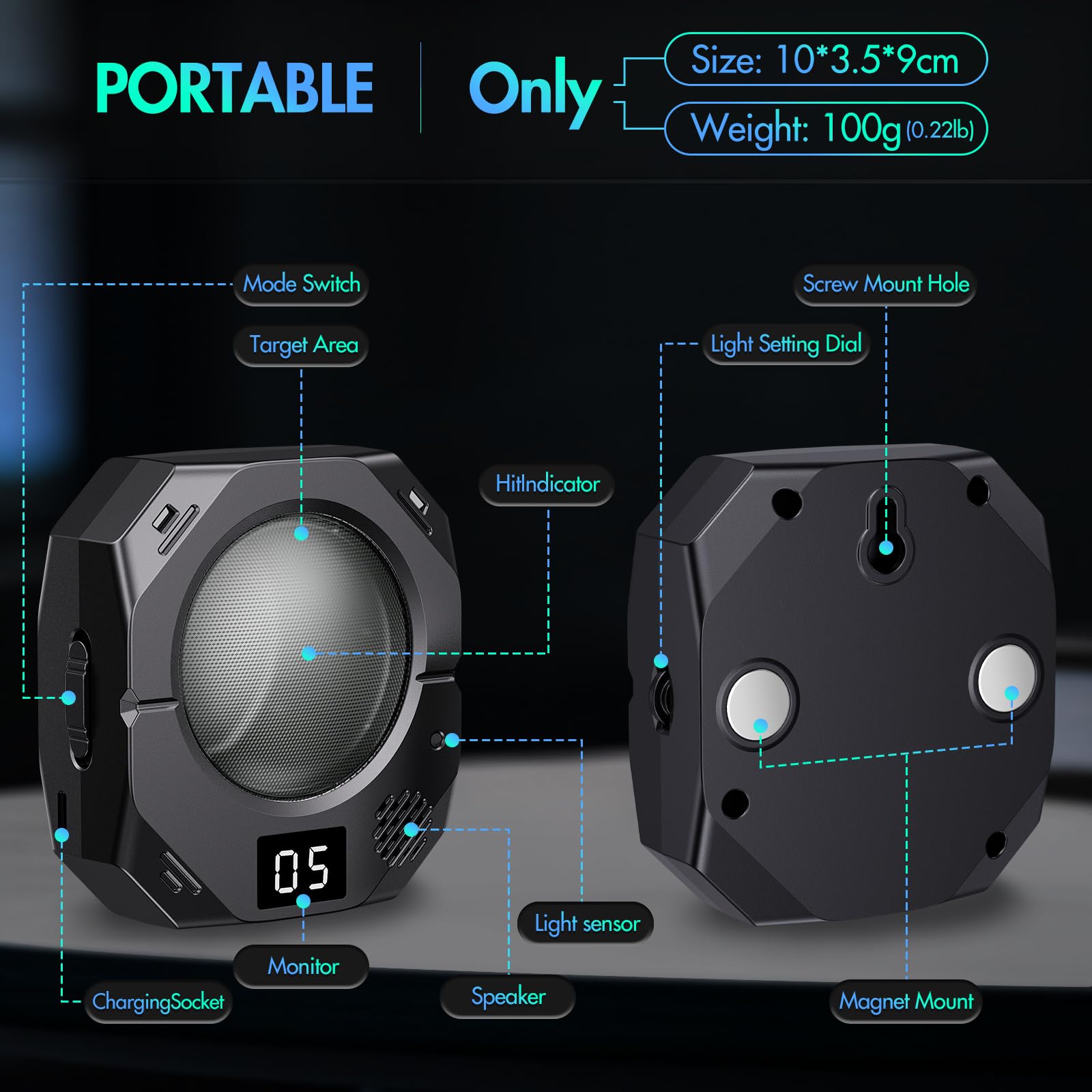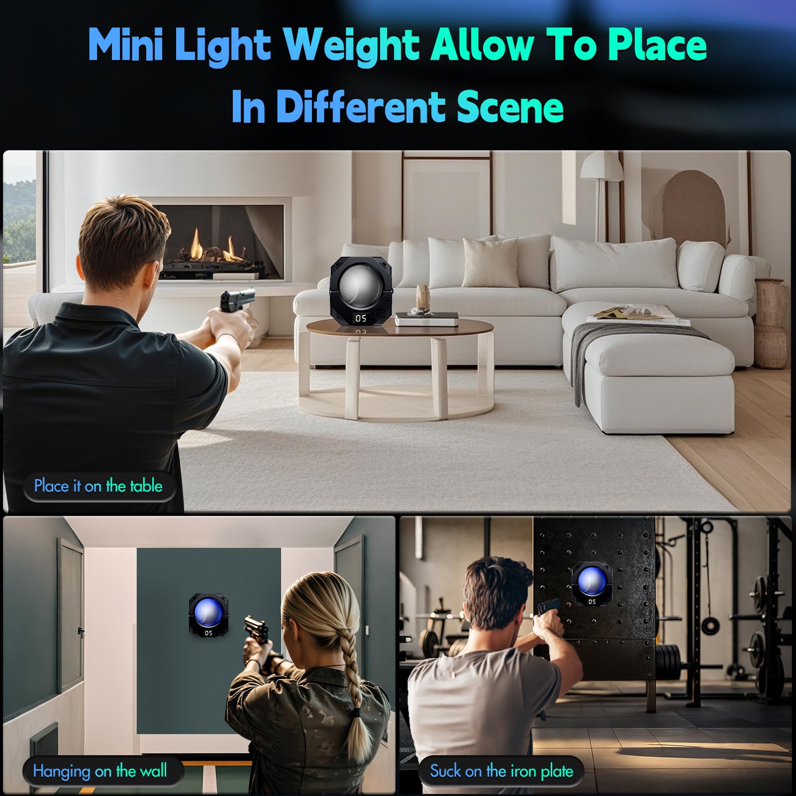 - Multiple installation:Our strike firearm training system designs with Compact and lightweight,allowing to place on any flat desktop,hang on a wall with hole on the back, and install on steel surface with magnets on rear even play it with your friend outdoor