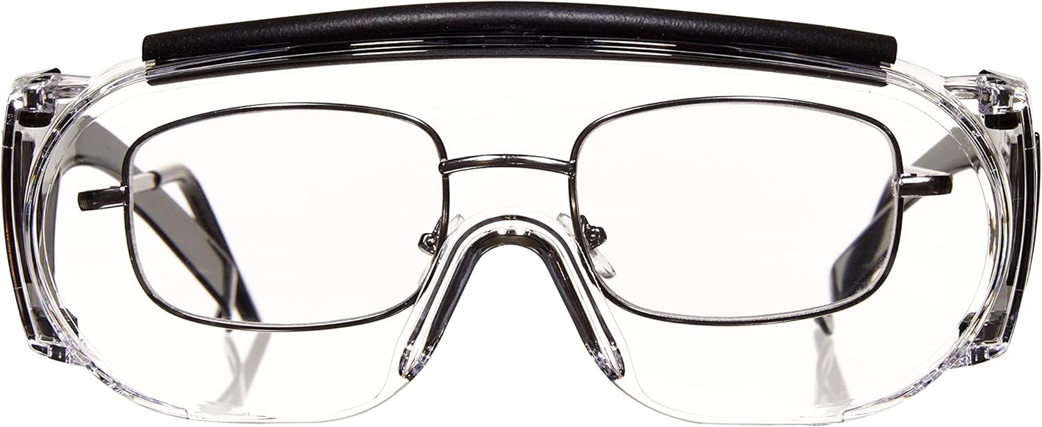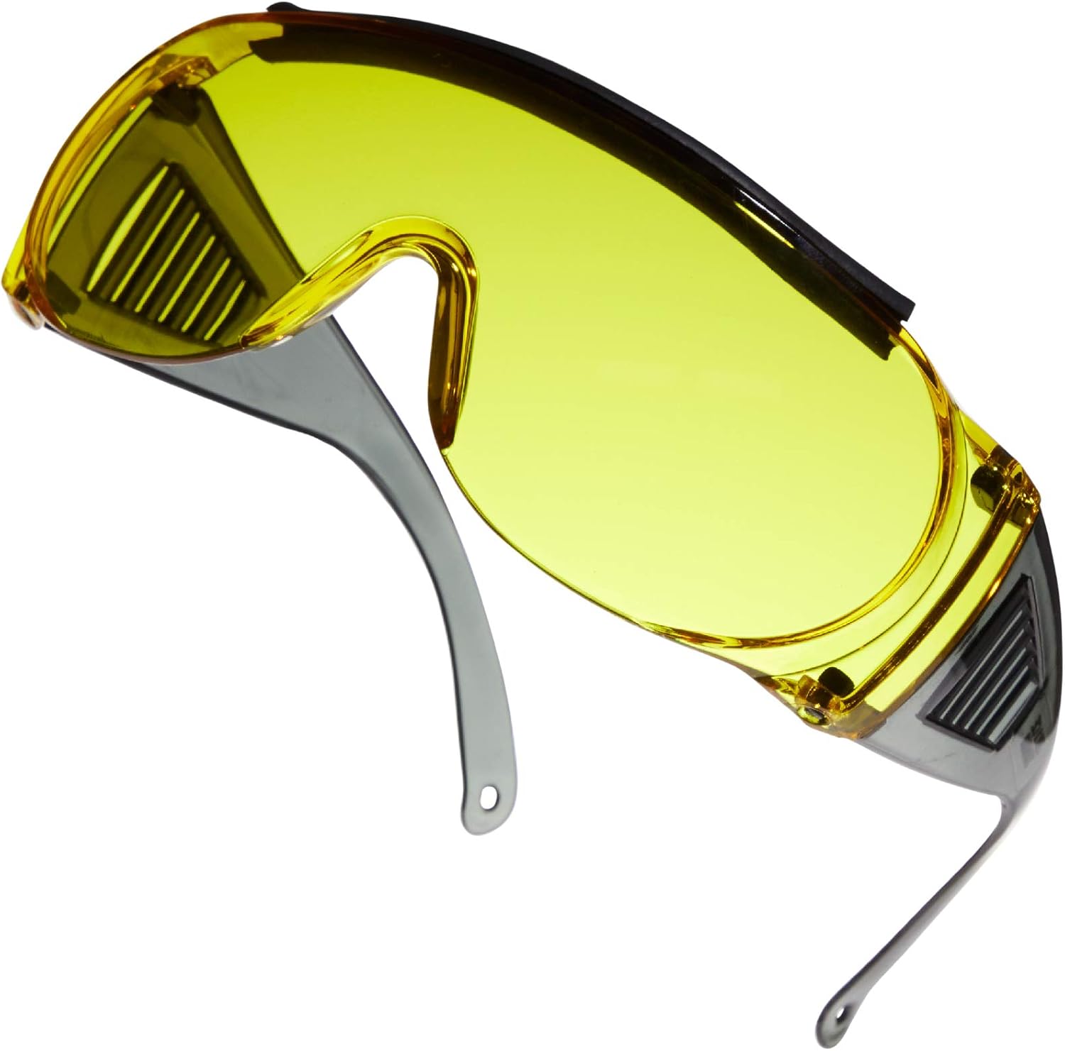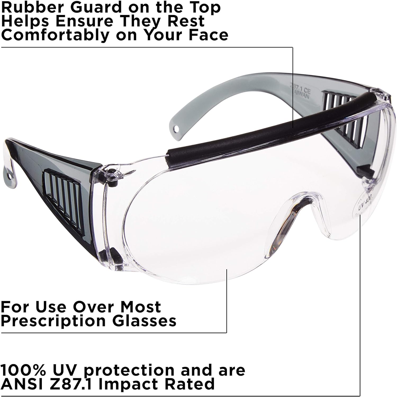 - WRAP-AROUND FRAME: Our glasses are wide enough that they don't impede your field of view, even when you are wearing prescription eyewear under them. The rubber guard on top ensures a comfortable fit all day long.