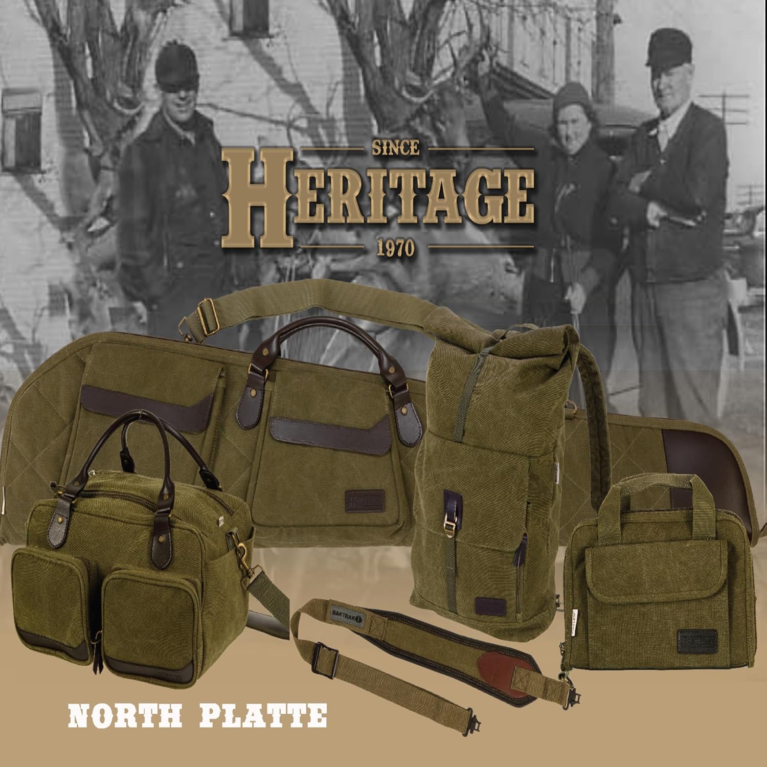 Allen Company - North Platte Heritage Series - Vintage Set - Rifle Case / Shotgun Case / Takedown Case / Backpack / Range Bag / Gun Sling (36 / 48 / 52 inches) - Olive Green