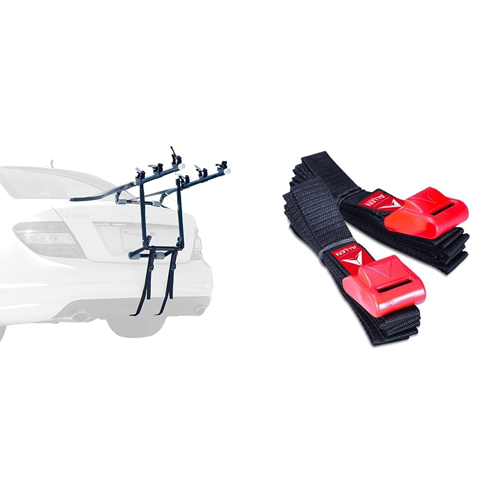 ALLEN Deluxe 3-Bike Trunk Mount Rack, Blk/Silver & Sports 8 Ft Polyester Cargo Straps with Padded Cam Buckles (500 lb Break Strength), Model 508S