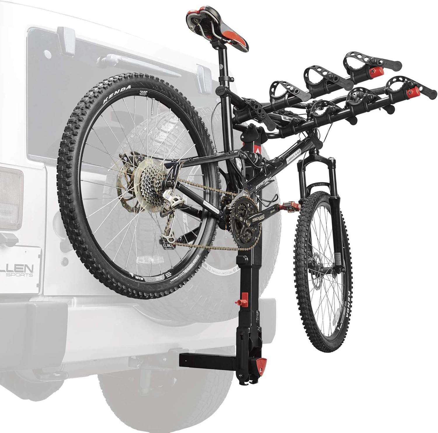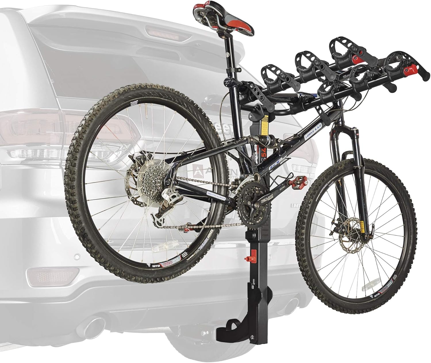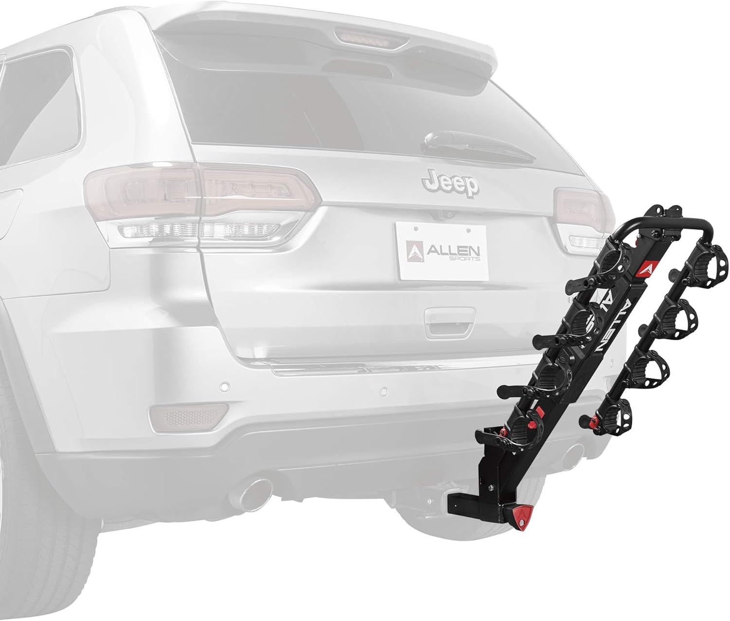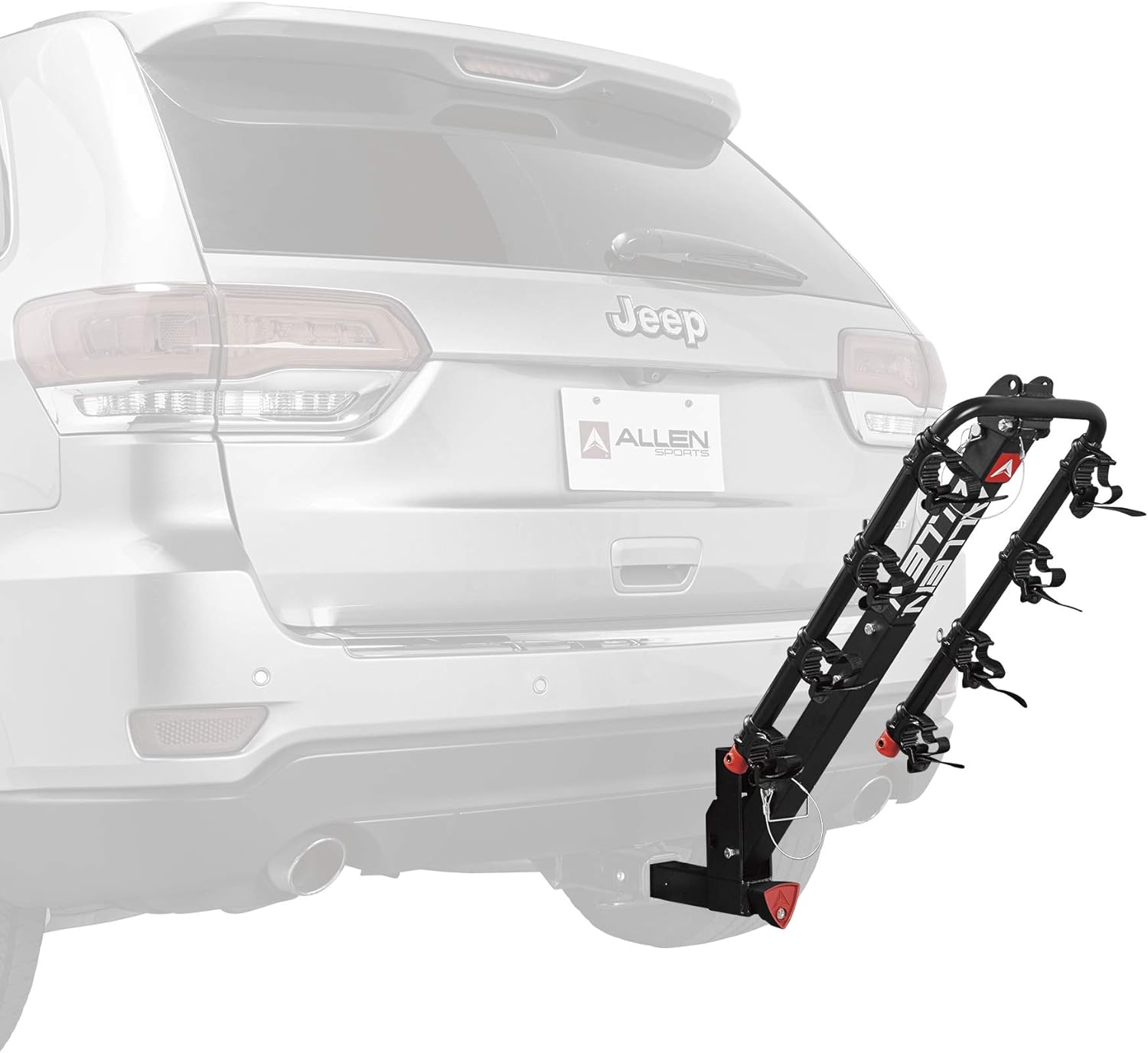 Carry up to four bicycles on road trips or camping guards with the allen four bike hitch mounted carrier. The hitch insert which fits a 2 inch receiver hitches is easy to operate and super secure for your bikes. Just attach it to your hitch, then use the tie down cradle system to individually secure and protect your bikes. The carry arms accommodates a wide range of frame sizes and designs, so you can carry your kid size mountain bike or adult road bike with equal confidence.