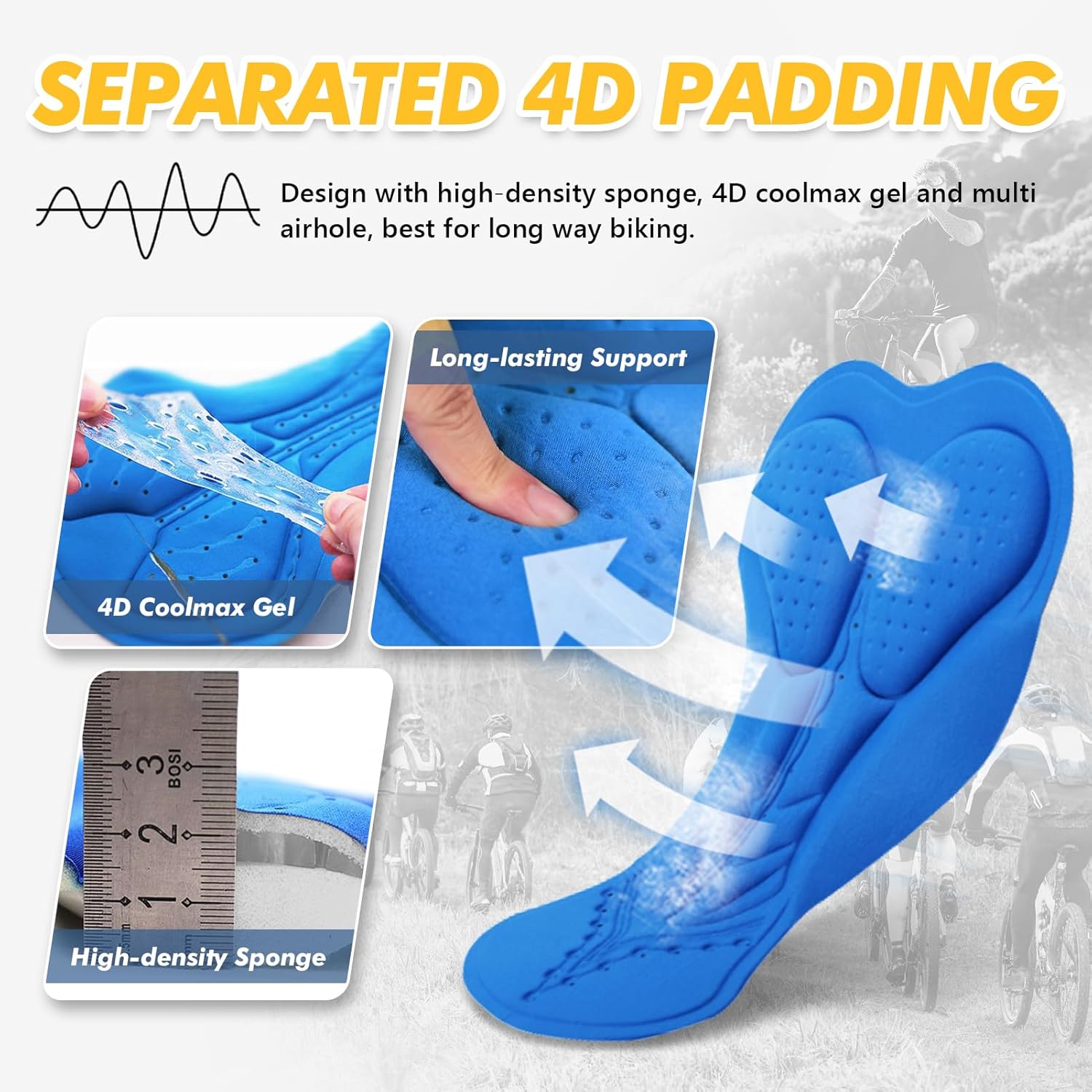 - Separated 4D Padding: Our mountain bike shorts with a precisely measured thickness and a soft 4D gel pad that provides optimal protection and comfort during your rides. The strategically placed breathable holes in the pad ensure excellent ventilation, promoting effective sweat-wicking and breathability. These bike shorts for men can be worn with or without the pad, offering versatility without sacrificing comfort.