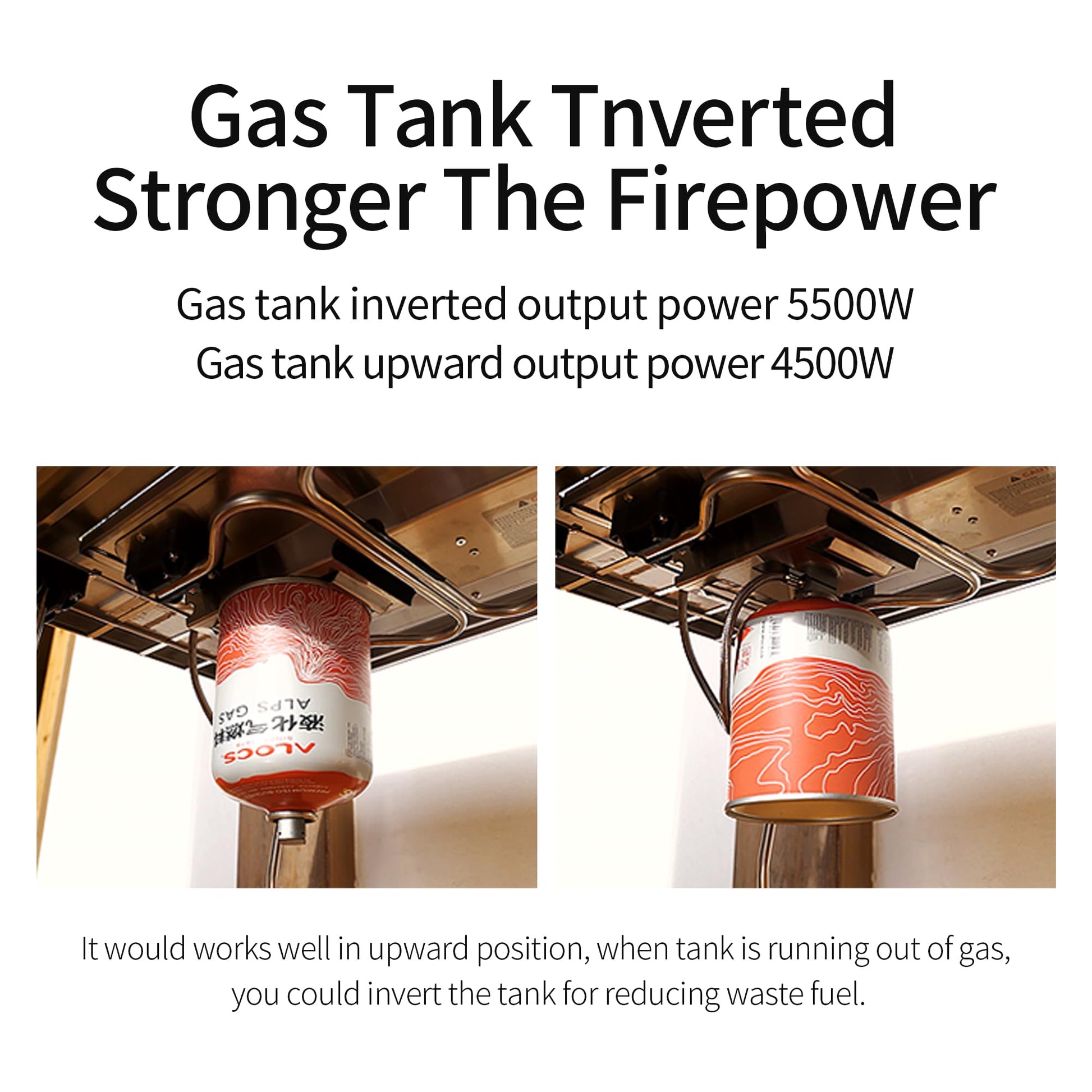 - Stepless Adjustment: You just need to do is connect the tank, turn on the gas control switch and press the ignition switch. And the flame adjustment knob allows you to adjust the flame size according to your needs, our gas stove would works well in upward position, when tank is running out of gas, you could invert the tank for reducing waste fuel.