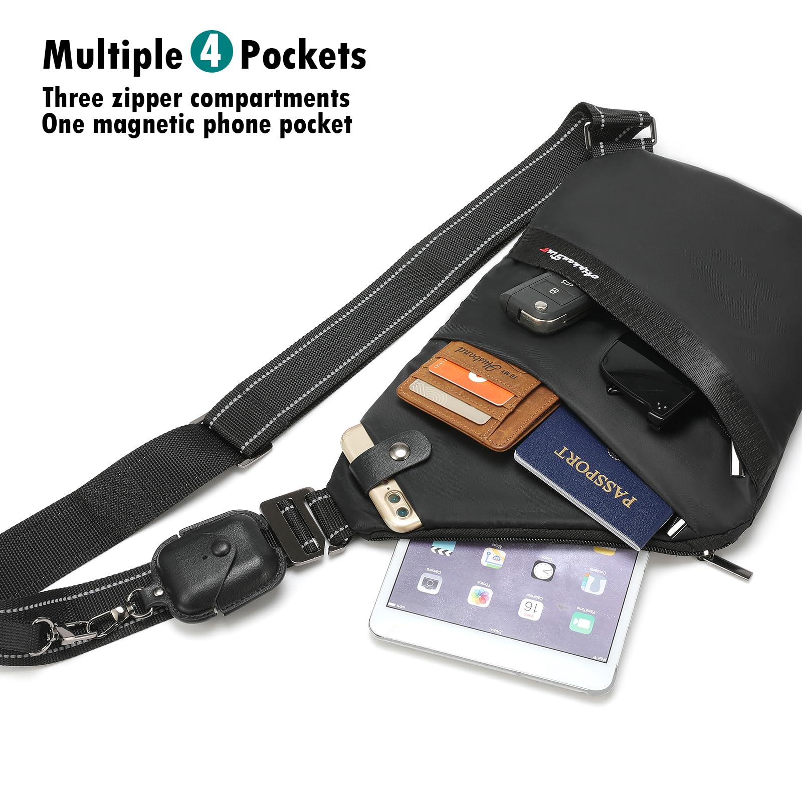 - 【Anti-Theft Design & Worn Under Jacket】This Anti-Theft Bag Is Designed With 3 Unique Hidden Pockets to Prevent Theft & Can Be Worn Under Jacket or Coat For Better Protection Against Thief. This Ergonomics Design Fits Nicely Across Your Body So You Know Your Important Essentials are Close to You & Safe. Perfect Bag to Safely Store Your Phone, Cash, Wallet or Docuements for Travel Abroad & Vacations.