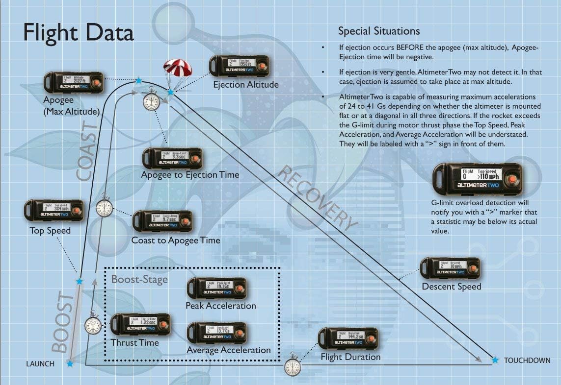 An awesome gift for anyone who is into rocketry. This is the second generation of the Jolly Logic AltimeterTwo, the ultimate rocket flight analyzer. New in this version are a bitmapped, animated display, larger battery, and a History feature which saves the last 100 flights. Amazingly tiny and incredibly powerful, the AltimeterTwo uses state-of-the-art pressure and acceleration sensors to perform 10 key flight analyses for each rocket flight, including altitude, speed, acceleration, coast time, apogee to ejection time, ejection altitude, descent rate, and flight duration. No batteries required: the AltimeterTwo plugs into just about any USB port to recharge. Its durable construction and convenient tether point make this the only rocket altimeter that can be mounted in just about any rocket--even those without a special payload section. Although data is NOT downloadable, every key statistic is compiled and presented clearly on the sunlight-readable LCD screen. For rockets only. Will not work in other types of flying things.