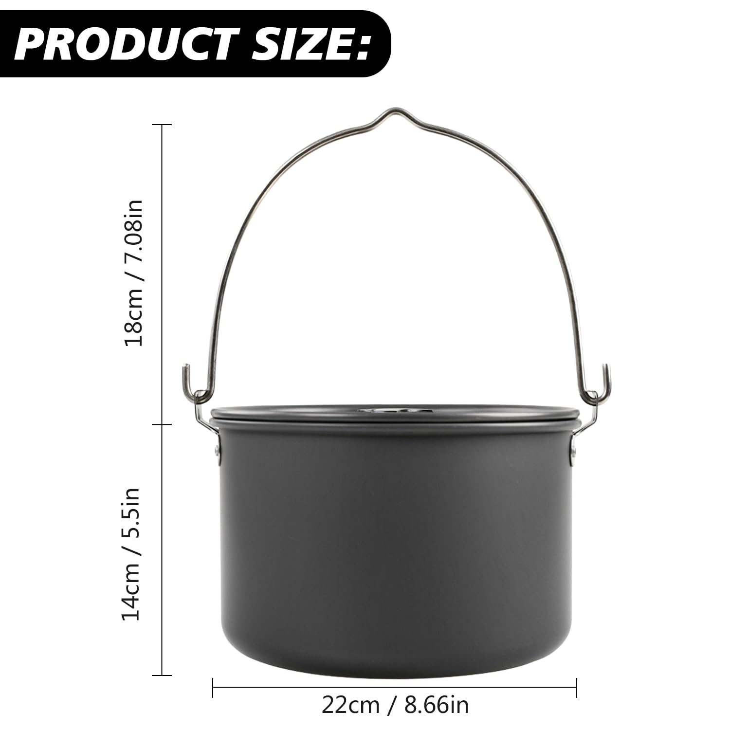 Aluminum Alloy Camping Hanging Pot with Lid Lifter Handle Lightweight 4200ml Portable Pot for Camping Cooking Hiking Picnic