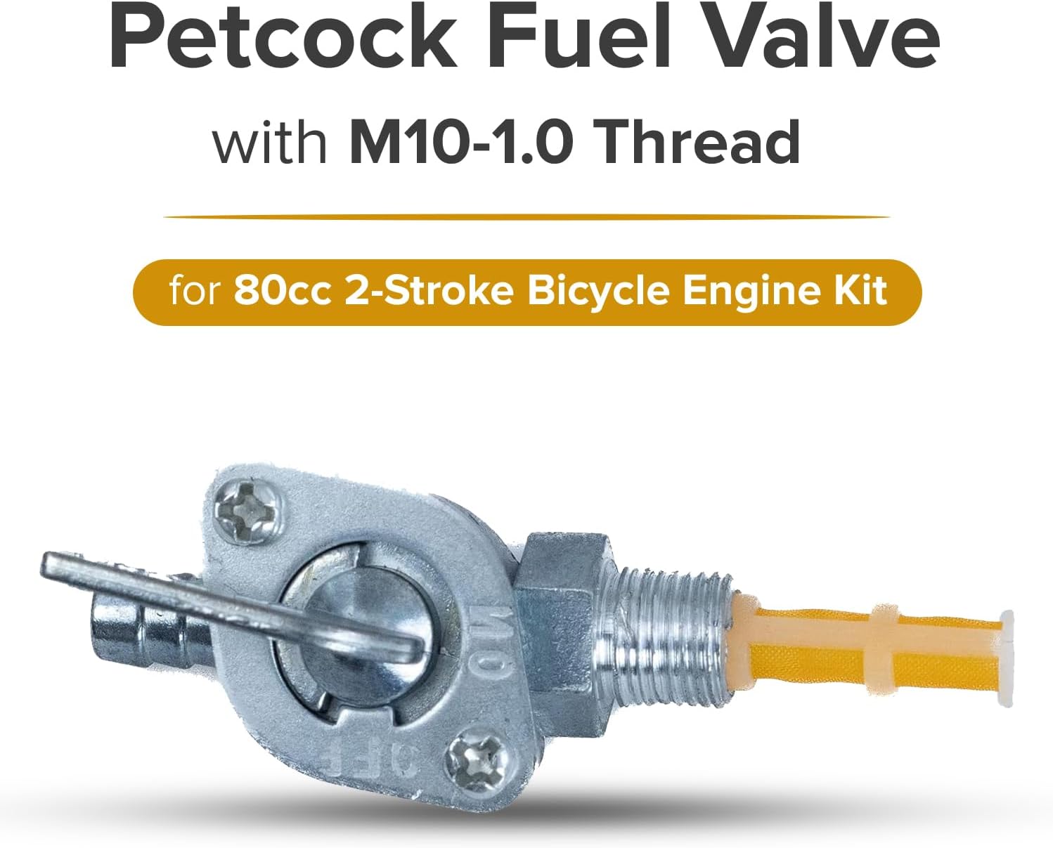 - Our petcock fuel valve with an M10-1.0 thread for an 80cc 2-stroke bicycle engine kit is the small valve that controls the flow of fuel from the tank to the carburetor.
