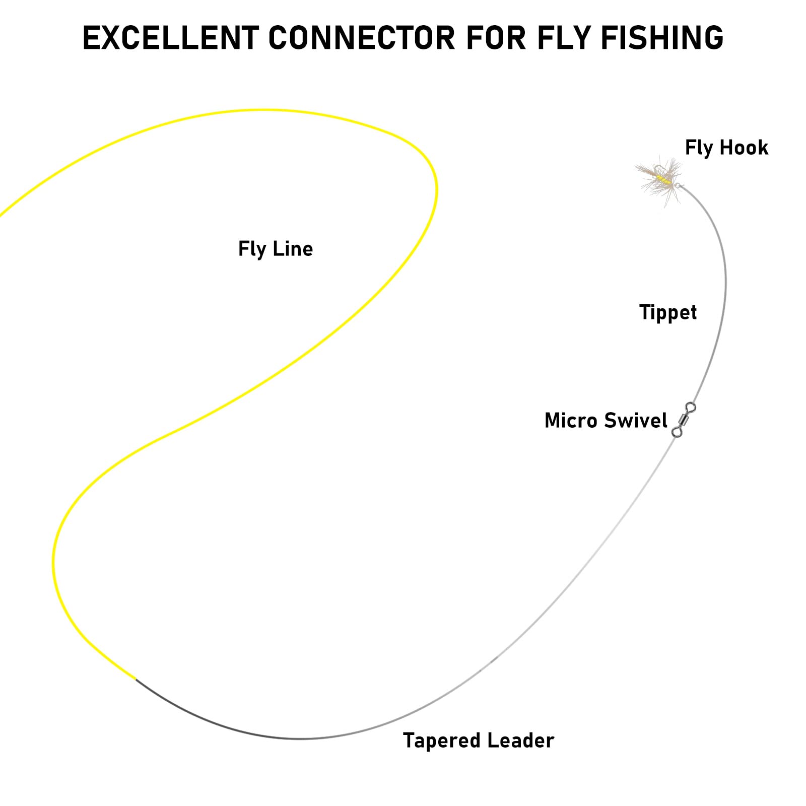 - EXCELLENT CONNECTOR. Connects tapered leader and tippet, reduces the force on tippet effectively(anti twisting), allows for simple replacement of tippet, and enables your fly lure to maintain the most natural movement.