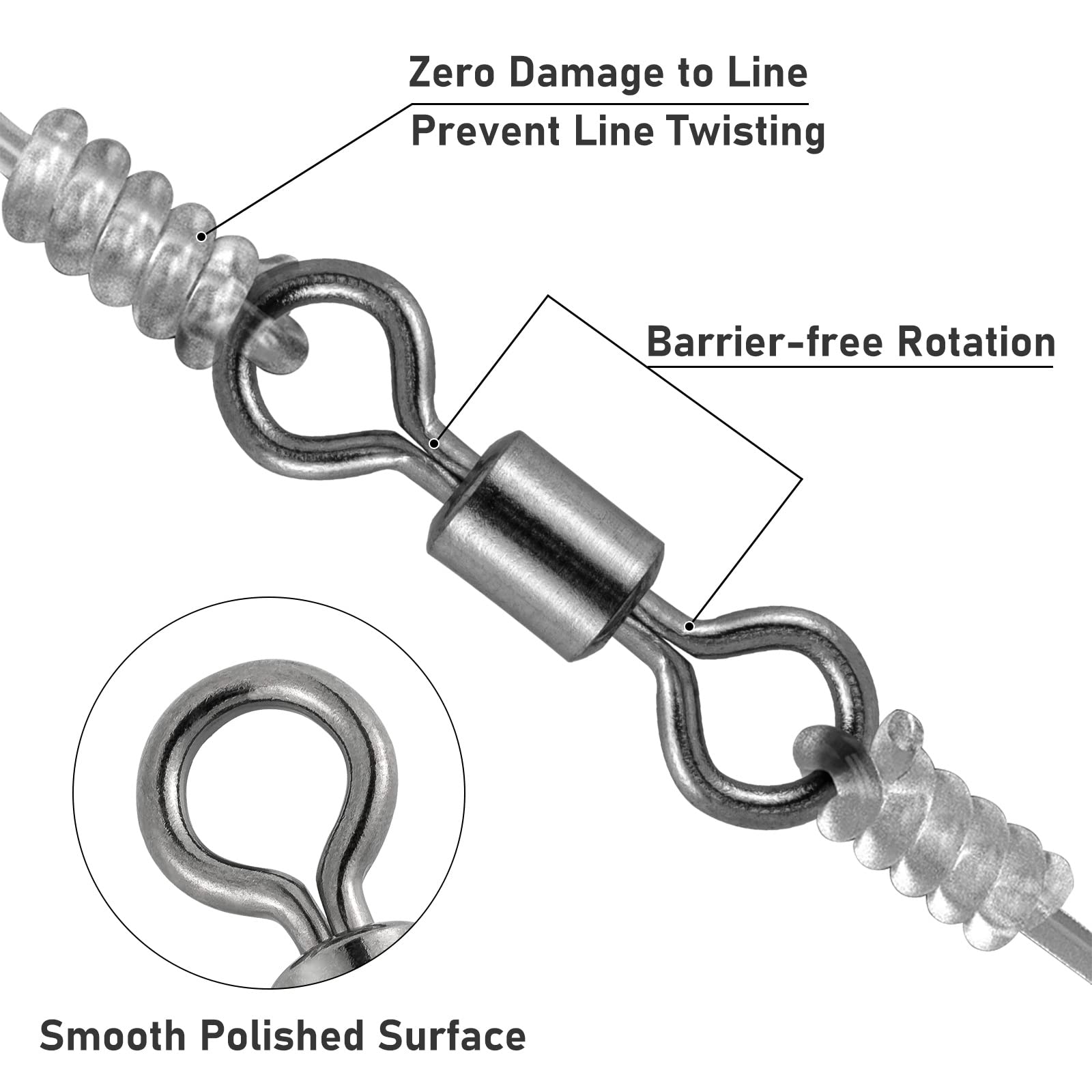 - SMOOTH & 360° ROTATE. Polished surface and the barrel body is precisely cut without flaw left inside, ensure 360° rotate smoothly, effectively prevent fishing line from twisting and being cut.