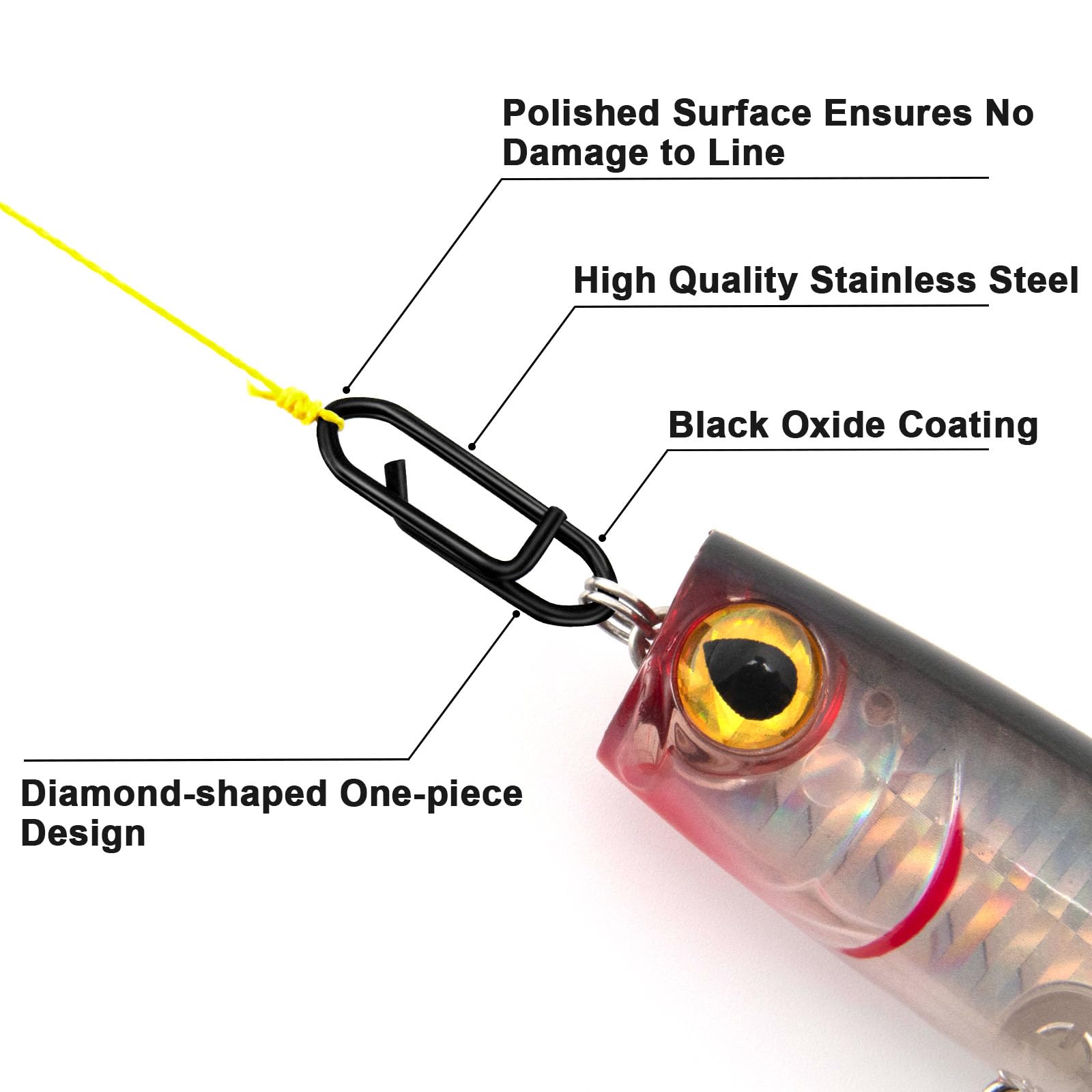- APPLICATION: Our fishing clips can be used with various types of lures, such as crankbait, plug, swimbait, minnow, popper, etc., to keep lure in its most natural movement.