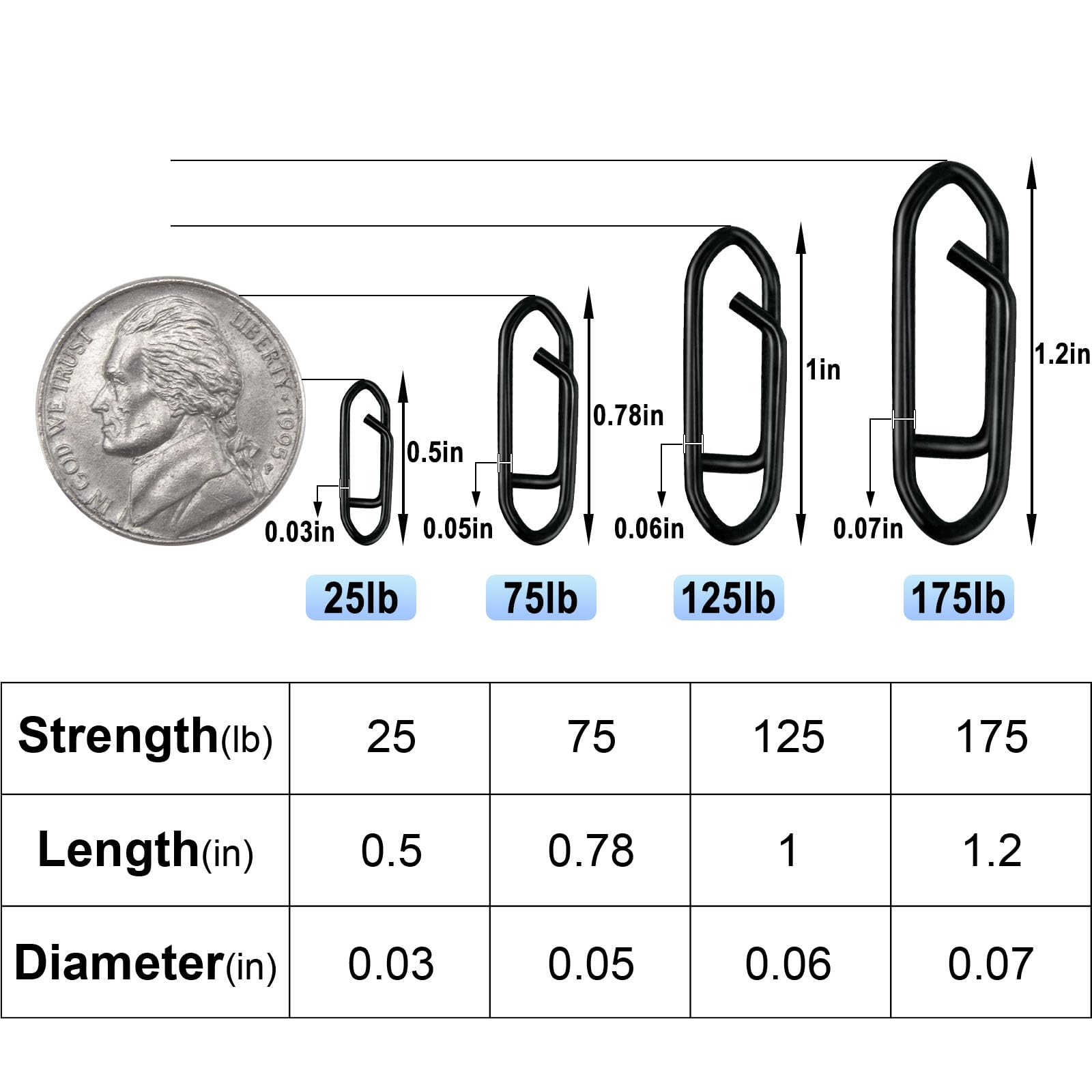 - PREMIUM FISHING CLIPS. These one-piece fishing power clips are made of high-strength stainless steel with black oxide coating for high stability, hardness, abrasion and corrosion resistance. Suitable for saltwater and freshwater fishing.