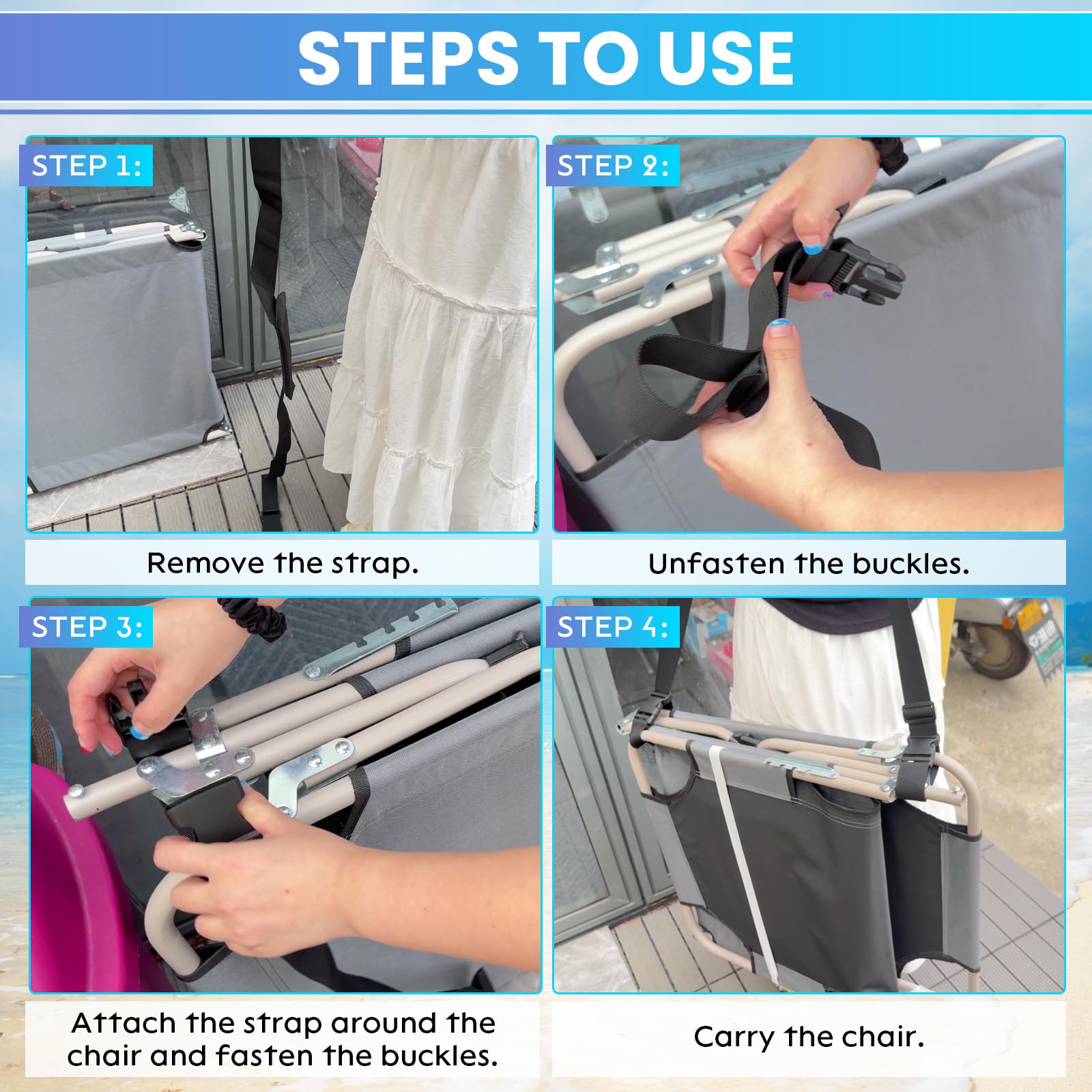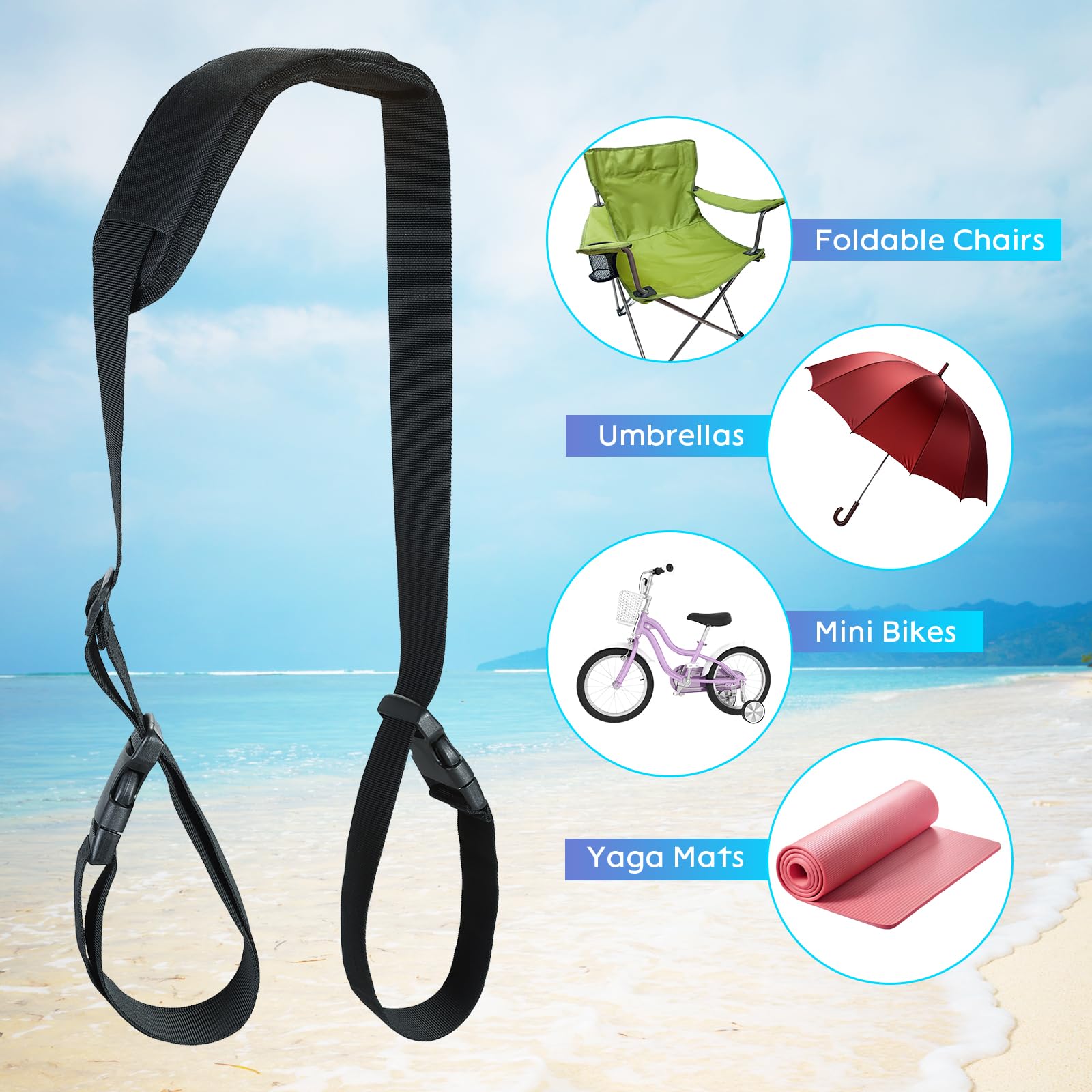 - Complete Set of 5 for Multiple Uses: With five beach chiar straps included, this pack offers versatile support for various equipment like foldable chairs, umbrellas, mini bikes, yaga mats and more. A convenient choice for outdoor adventurers, each strap is ready to help keep your hands free, making every trip more enjoyable and manageable.