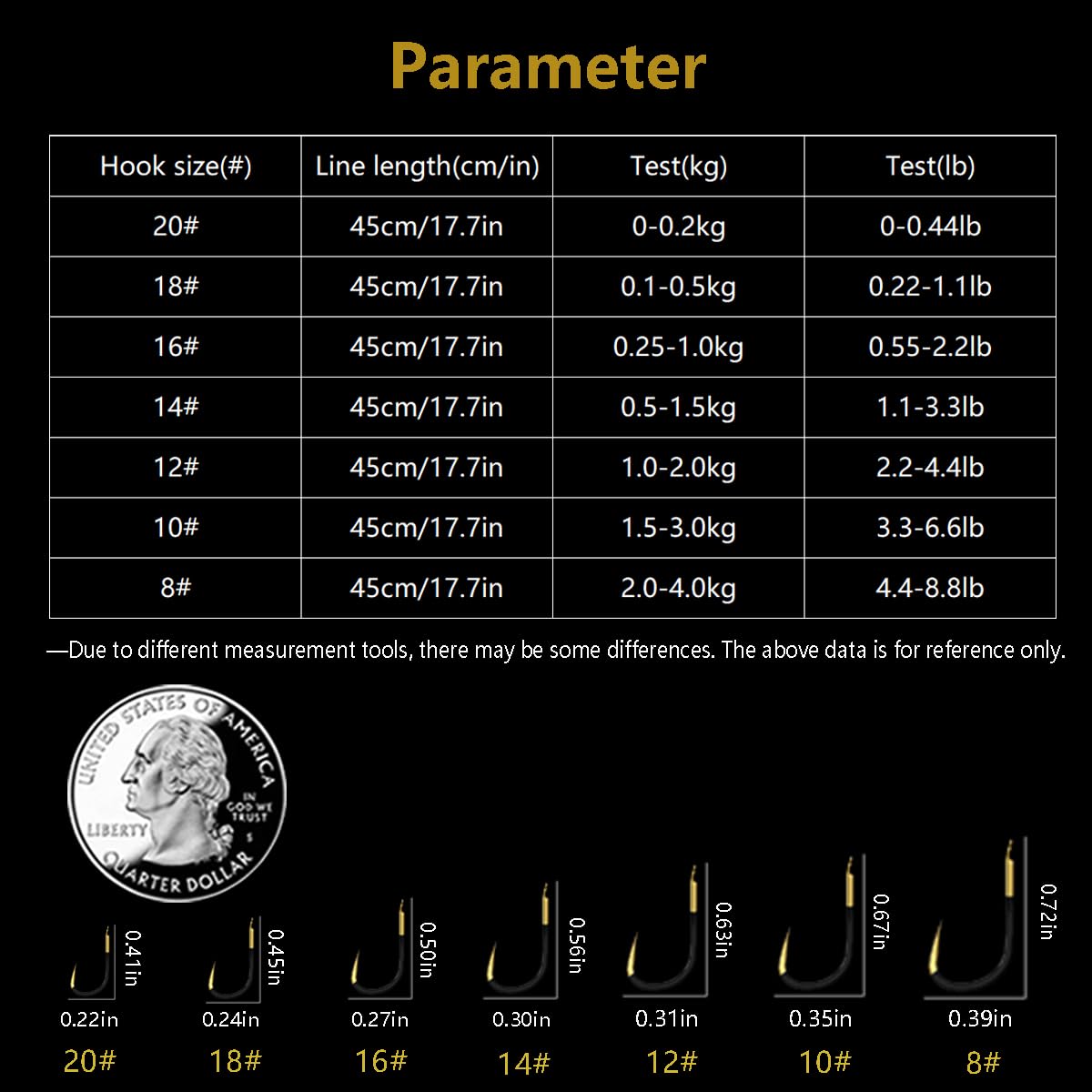 - Condition: The barbless black gold hook is relatively small, suitable for fishing weight about 0lb-8.8lb. Hook size, line length and test refer to the picture 2 data pls. Two hooks tethered together and you can also cut it open, thank you