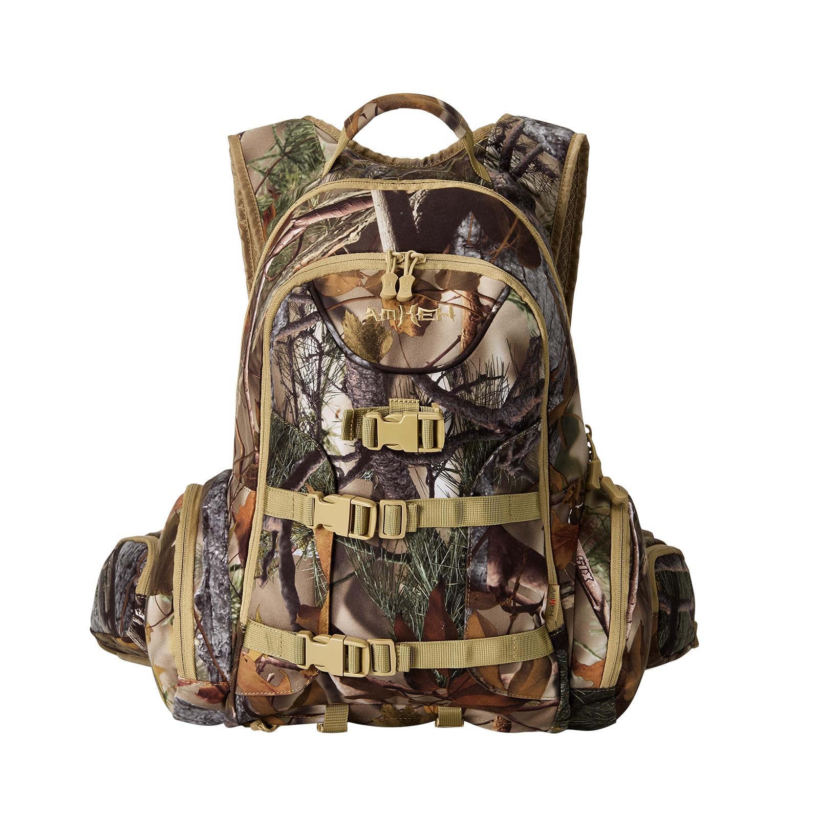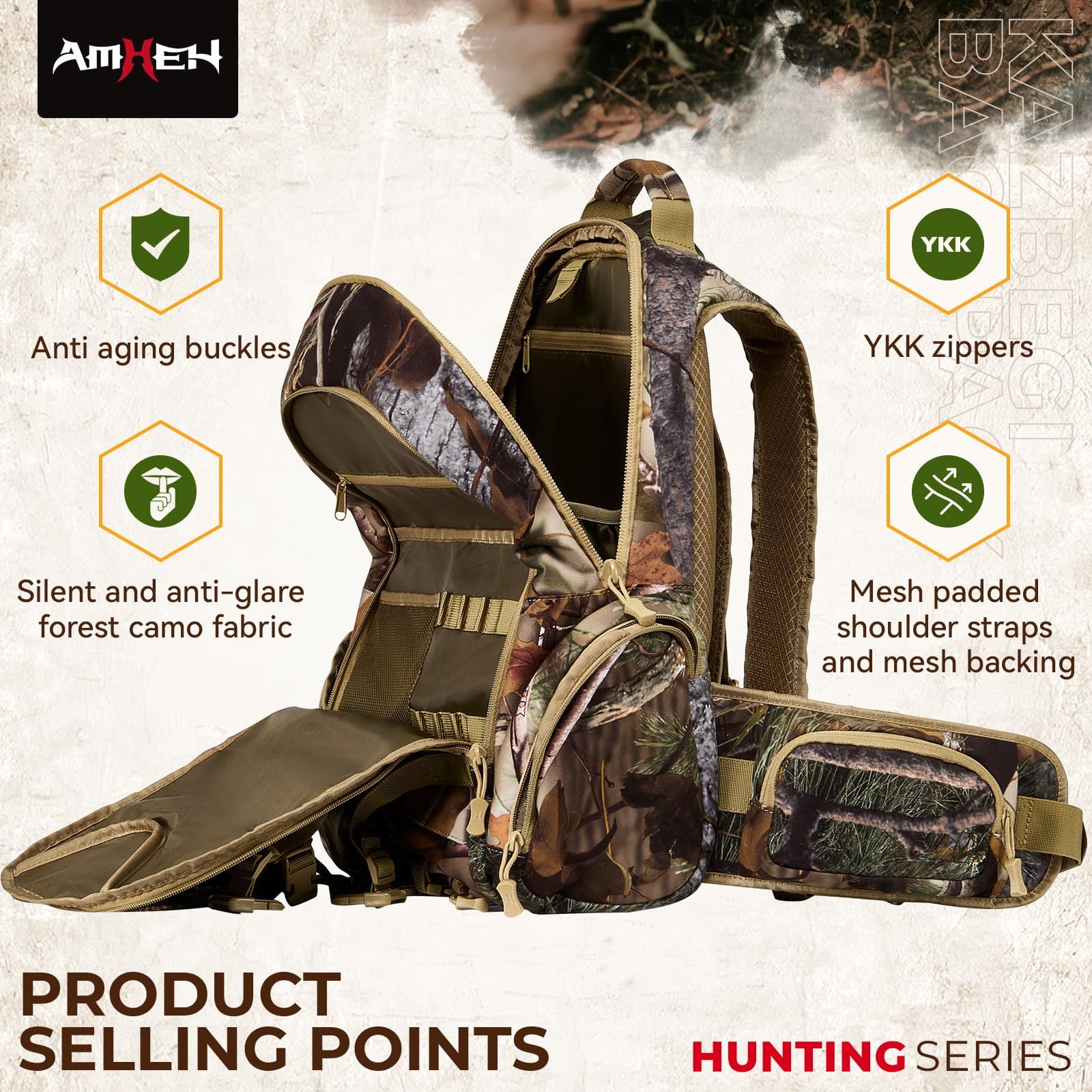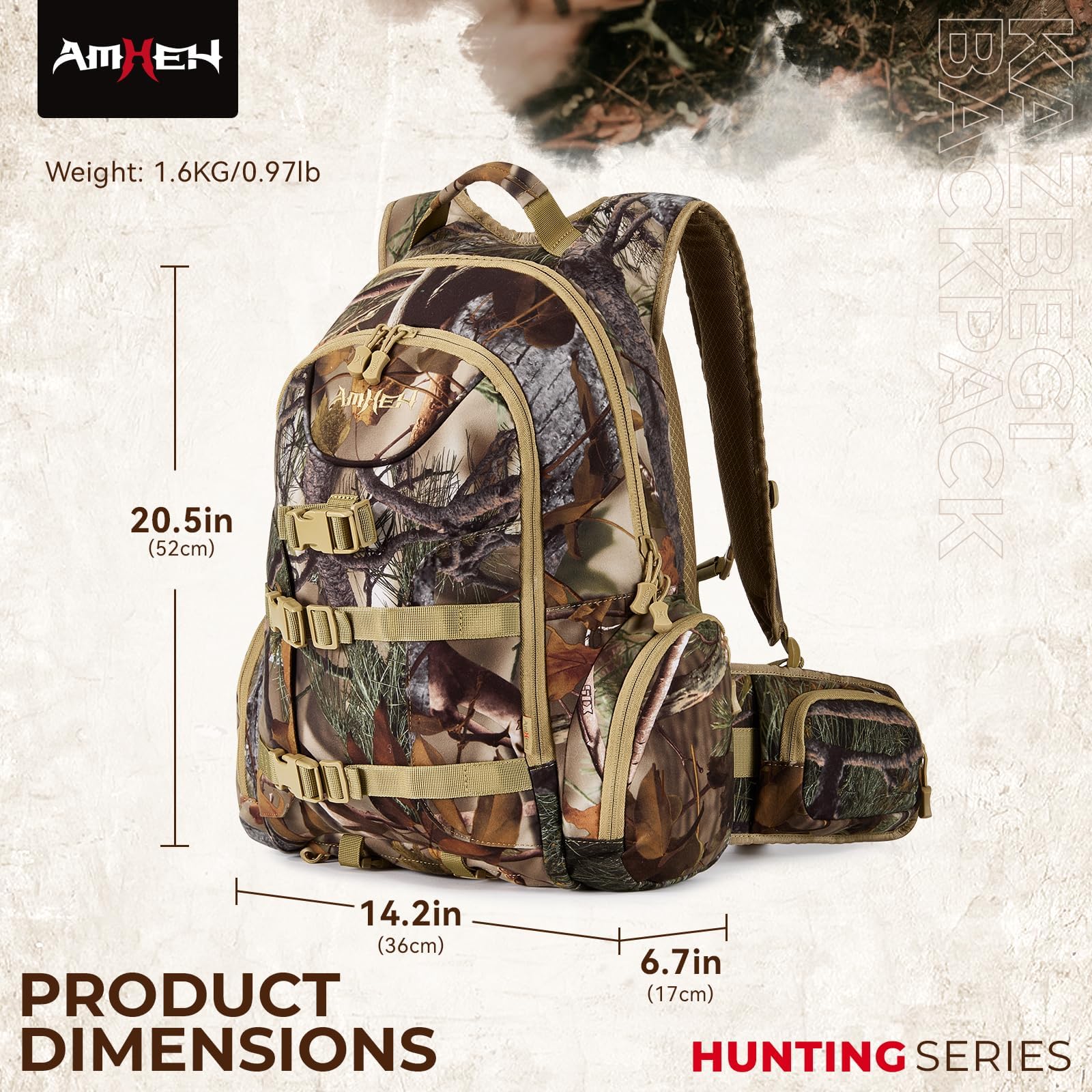 AMHEH Hunting Backpack for Men Outdoor Waterproof 31L Durable Hunting Day Pack for Bow Rifle Forest Camo