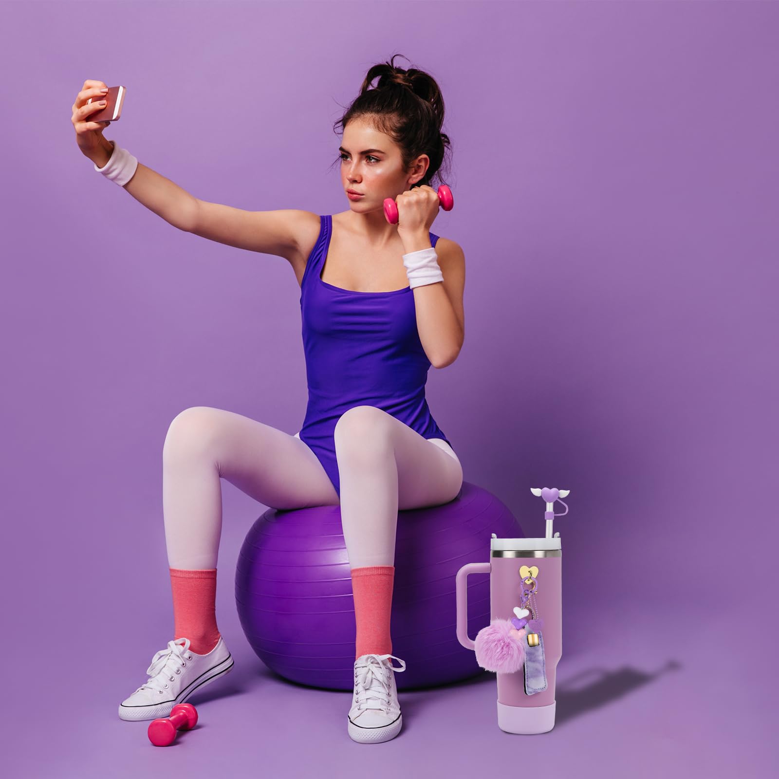 - Tumbler Charms: The tumbler charm set designed for girls. With lipstick holder, pompom ball, straw covers, heart keychain charm. It’s convenient for girls to reprint the lip in rush time or after sports