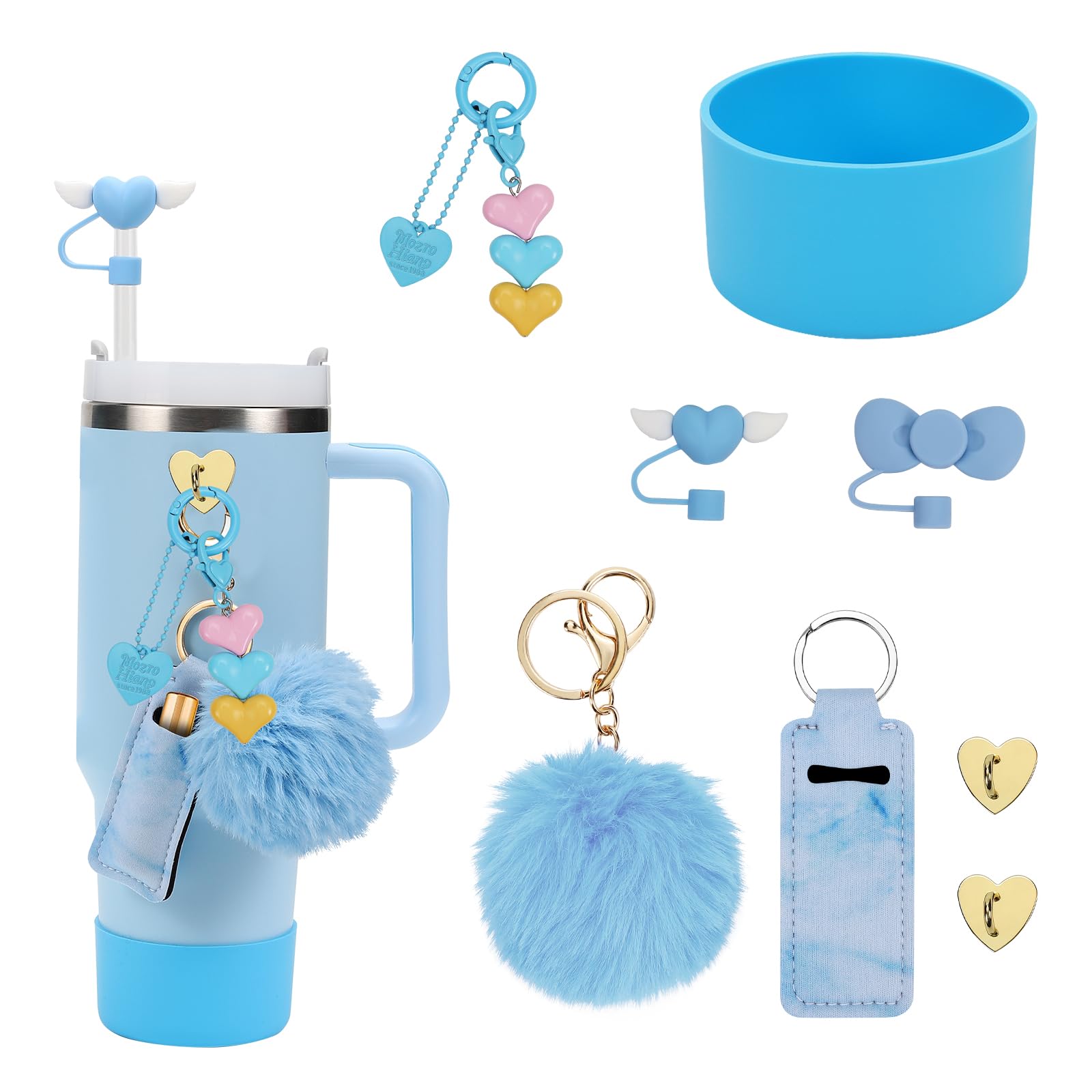 - Package Include: 1Pcs Heart Keychain, 1Pcs Pompom, 2Pcs Silicone Straw Cover, 1Pcs Lipstick Holder, 1Pcs Silicone Stanley Cup Boot.