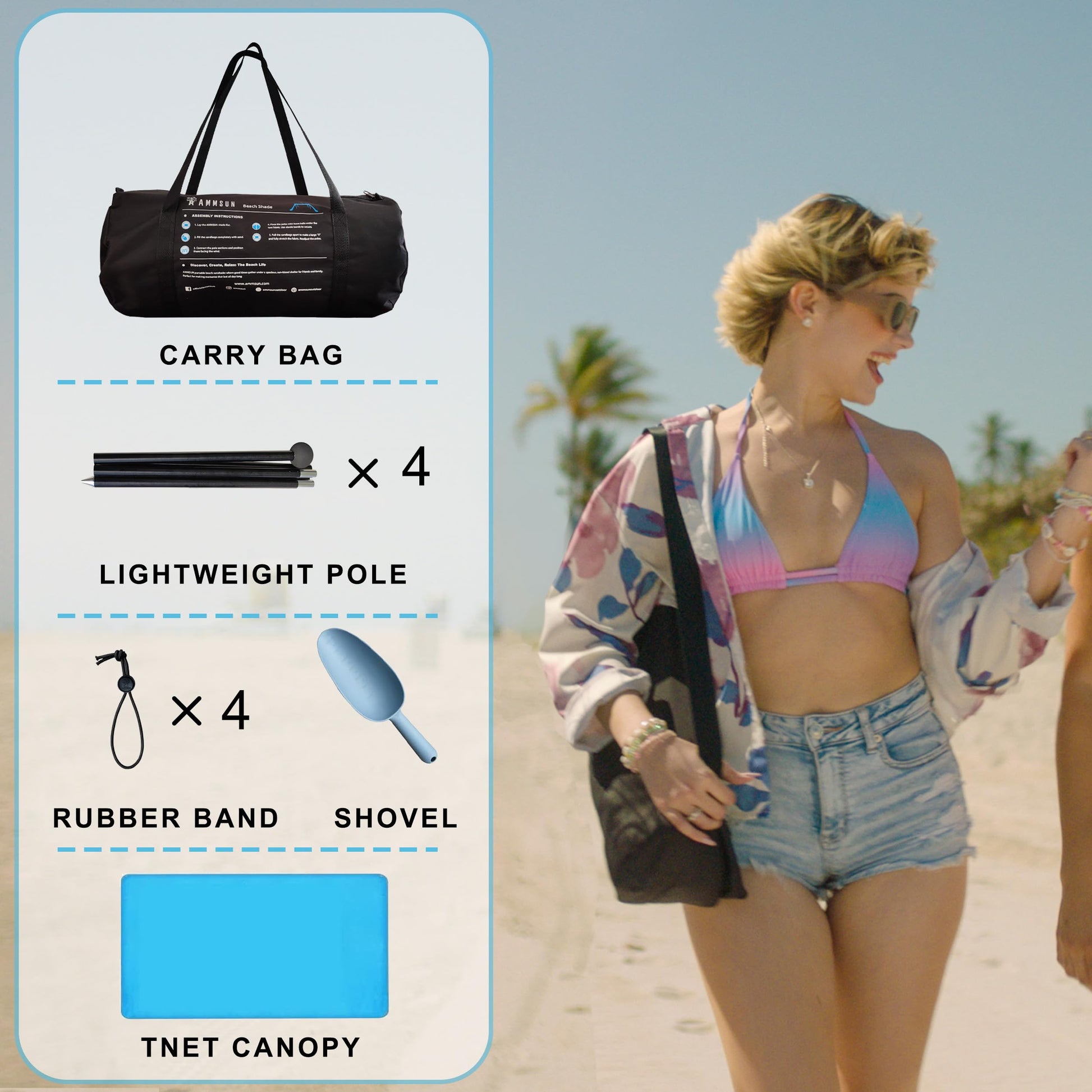 - PORTABLE & LIGHTWEIGHT DESIGN: AMMSUN stretch Beach Canopy has a weight of 8.81 pounds and measures 20.47 * 6.69 * 6.69 inches. The included carrying bag allows for convenient transport anywhere, fitting easily in luggage for worldwide travel adventures