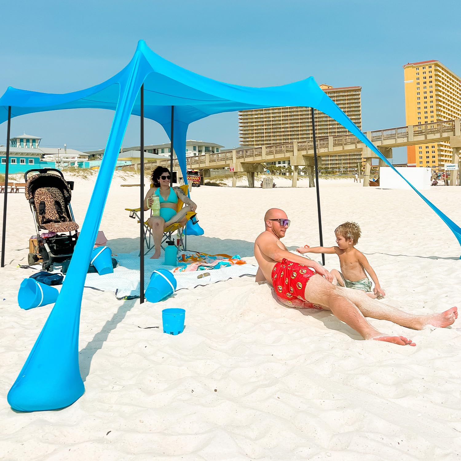 - High-quality Fabrics: The beach tent shelter canopy is crafted from durable and flexible Lycra material featuring UPF 50+ technology that shields against 99% of damaging UV rays to minimize sun damage. Premium Lycra Material effectively resists stretching and ripping, delivering continuous UV protection for your loved ones whether at beaches, outdoor venues, or yards