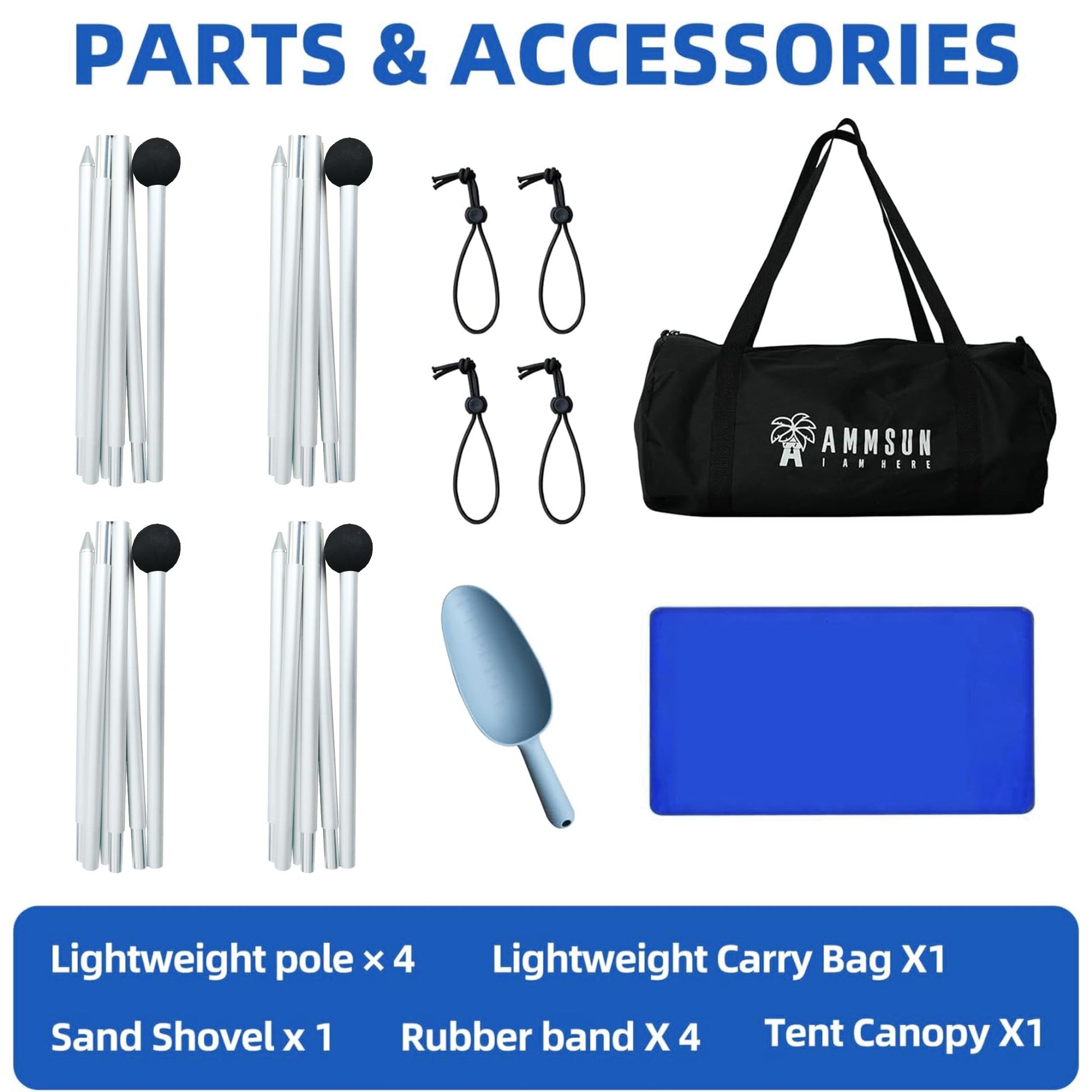 - 【Quick & Easy Setup】– AMMSUN beach tent can be set up by a single person in less than five minutes. First fill the sandbags, assemble and upright the poles, Tie the bungee cord to the EVA foam ball , you will get a spacious sunshade beach tent. As the sun moves throughout the day, simply move your sandbag anchors to a different spot, or adjust the position of the poles, to get the best shelter from the sun and keep enjoying the outdoors