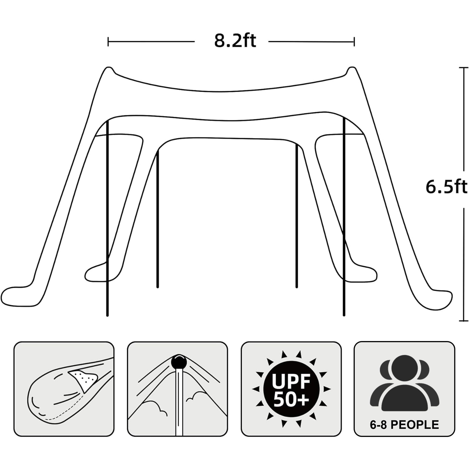 - 【Multifunctional Large Family Beach Tent】 – AMMSUN beach pop up sunshade tent is 9x 9 ft, with 4 folded aluminum poles up to 6.5ft in height, which greatly increasing its shadow area and providing spacious shelter for 6-8 person, Perfect for friends, family and good times. There are two ways to anchor the tent. Aluminum poles with folded and compact design, easy to carry, more stable and not easy to bend.