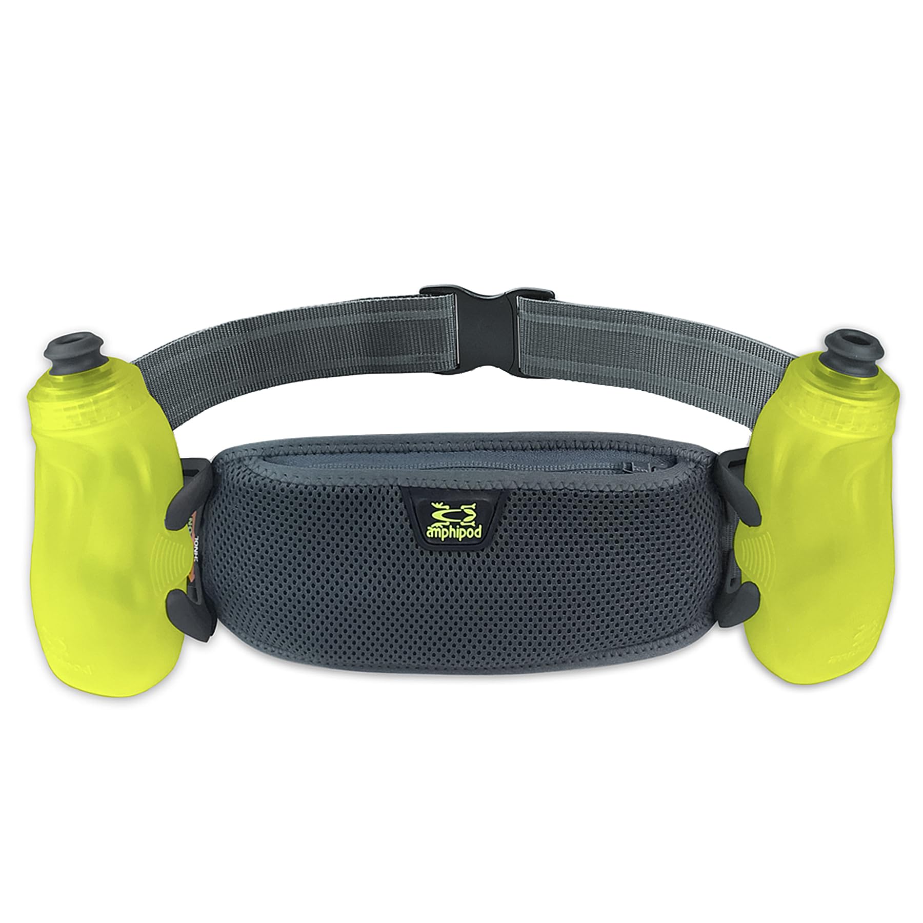 Amphipod RunLite Xtech 10K Hydration Belt, Ultra Runners Waist & Hydration Belt for Endurance Running, Racing, Men & Women - Steel/Green - 21 oz