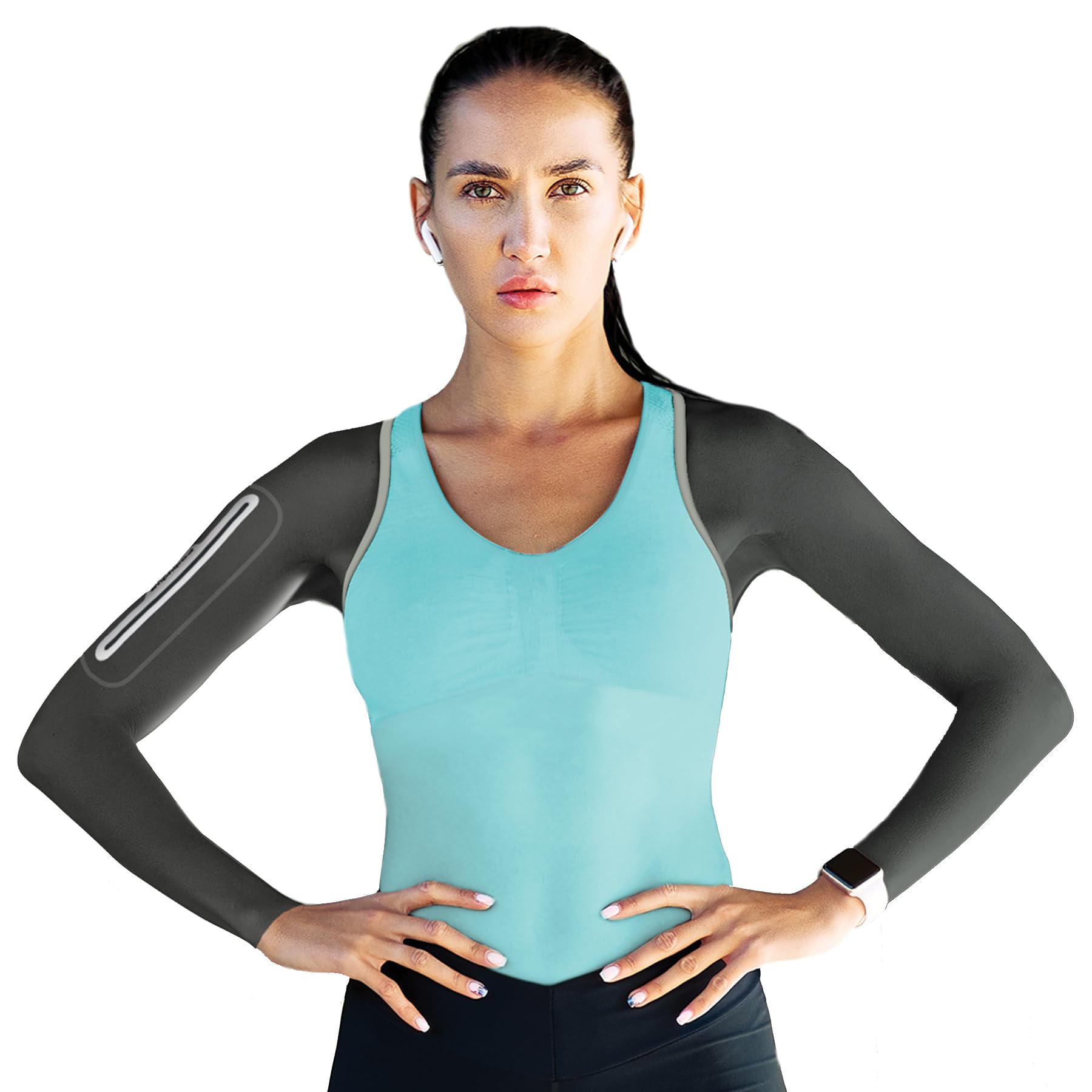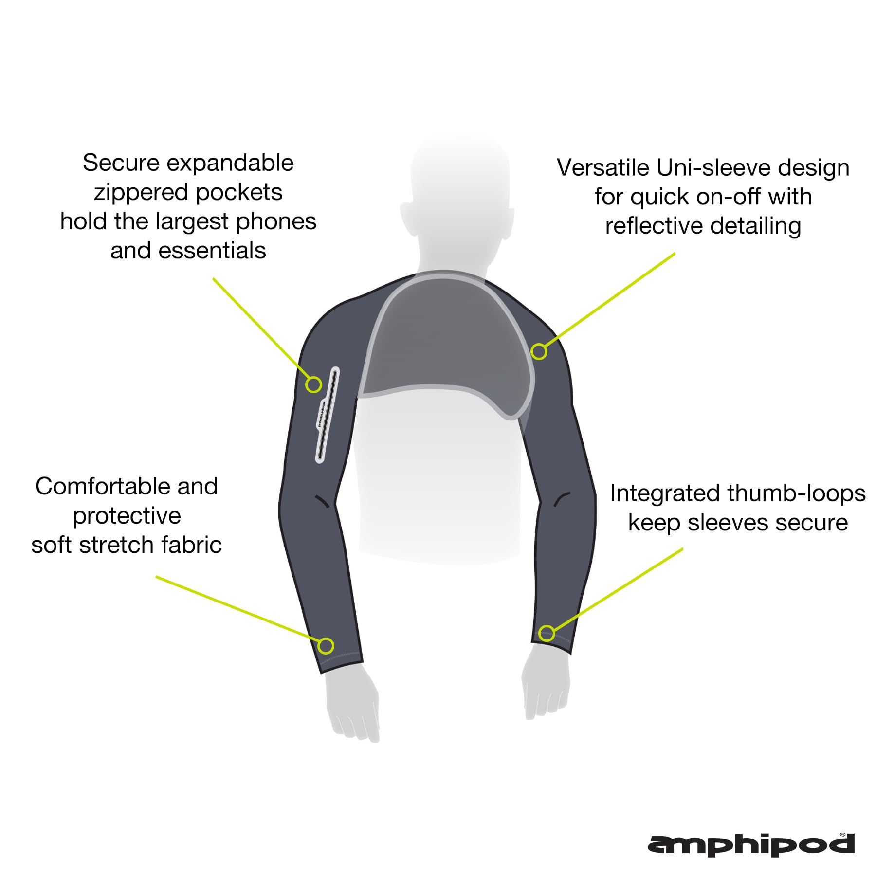 Amphipod Unisex ArmPod Run Sleeves, Reflective Runners’ Wearable Storage for Running, Jogging & Training - Charcoal/Silver - (L/XL)