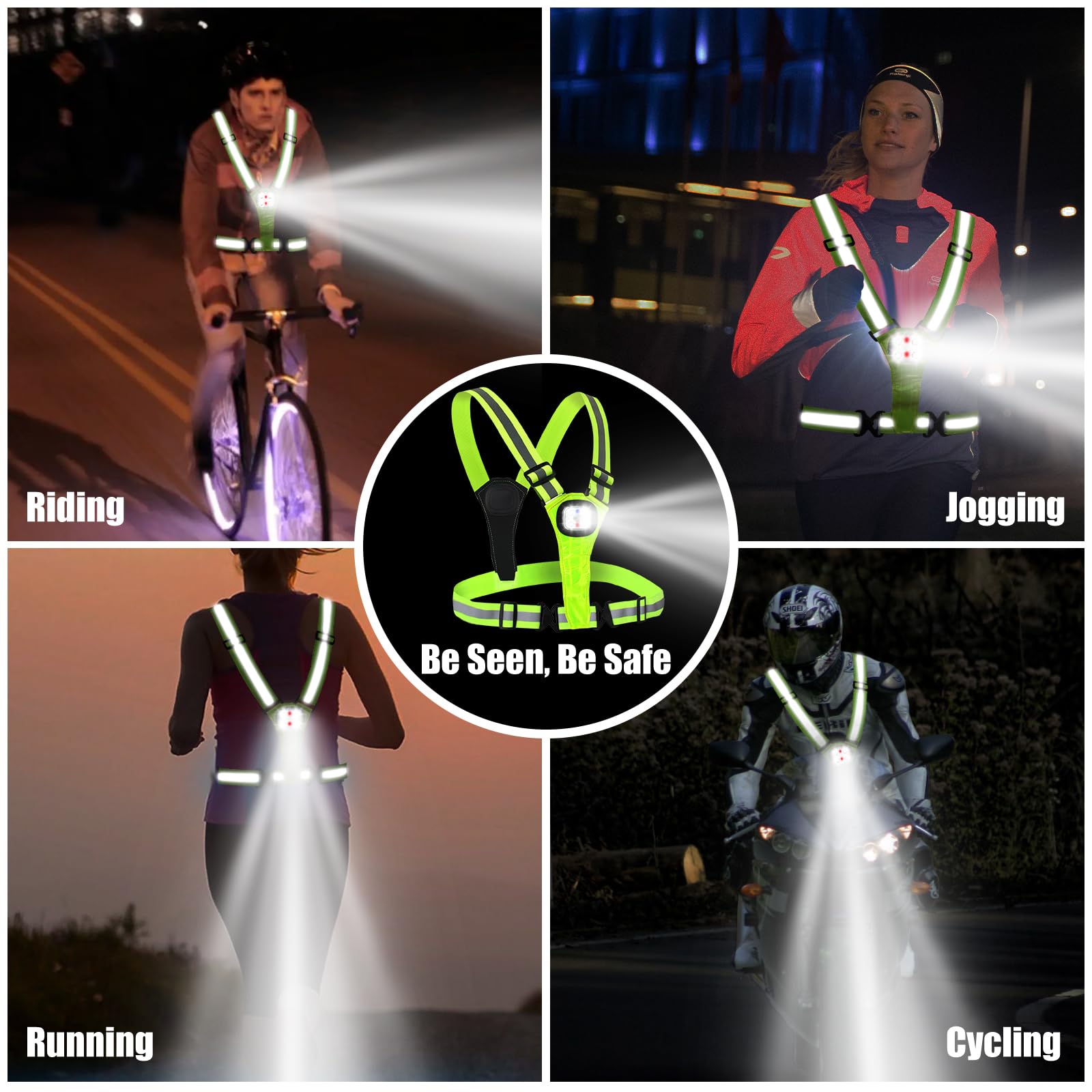 - USB Rechargeable: This reflective vest with lights is rechargeable via USB and has a built-in battery, so you don't need to buy batteries, the running lights running light reflective vest comes with a USB cable, which can be easily charged from any USB port.