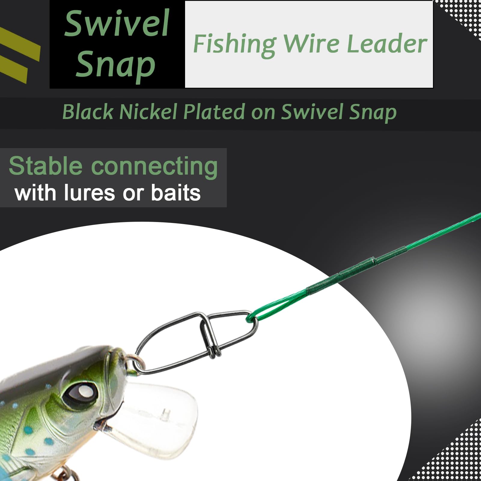 AMYSPORTS Saltwater Steel Fishing Leader Wire Stainless Swivel Fishing Leader Freshwater High Strength Wire Leader Lure Black Nickel #3 50lb 15.8in 20pcs