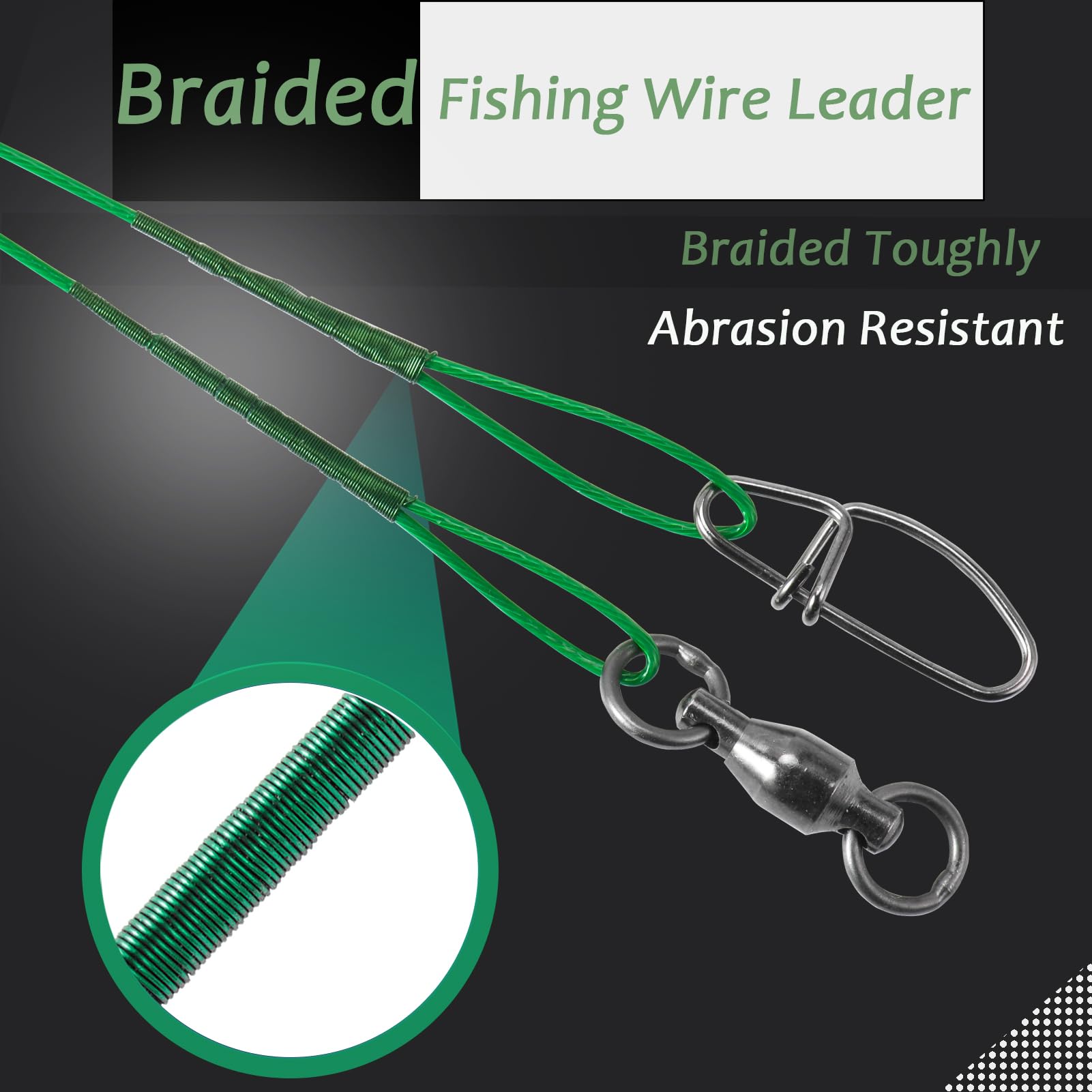 - Premium Steel Leader for Diverse Fishing Needs: Our steel leader is designed to meet the diverse needs of anglers. Whether you're using it as stainless fishing leaders, wire leader stainless, or steel fishing leader wire, fishing leaders saltwater offers the perfect combination of strength and flexibility. Made from premium stainless steel wire, it's a go to choice for those who demand the best from their fishing gear, ensuring that your line is always secure and ready for action.
