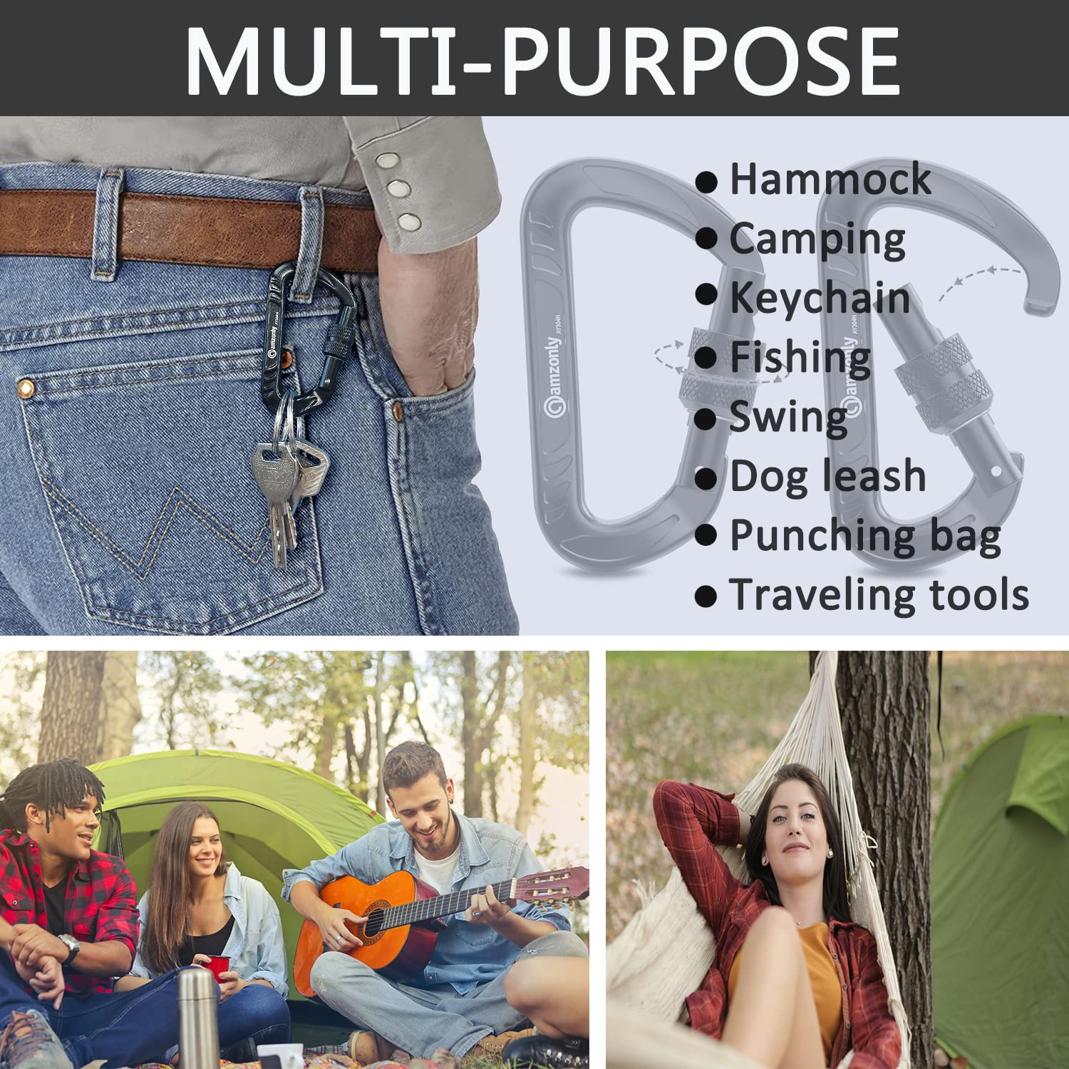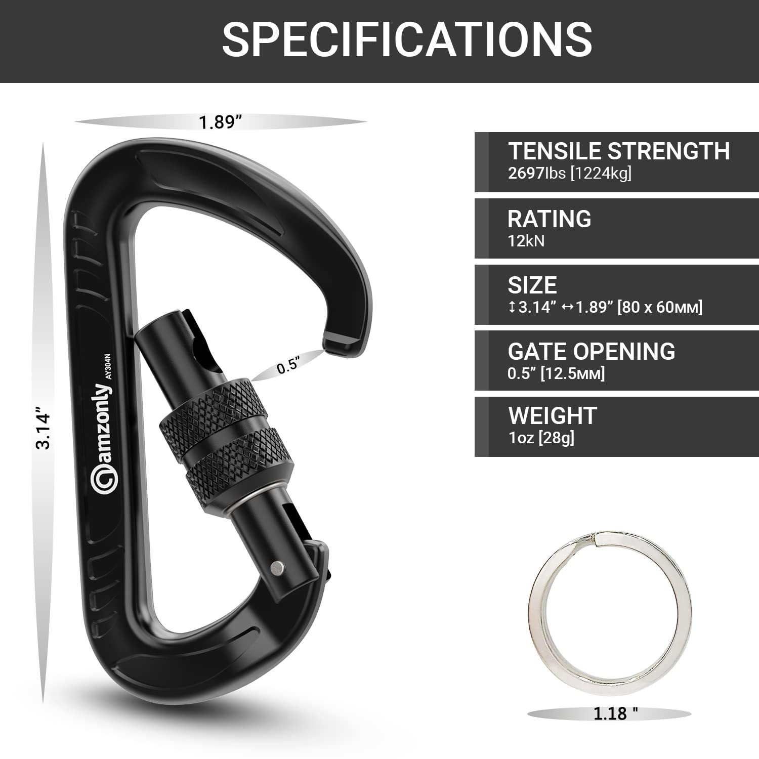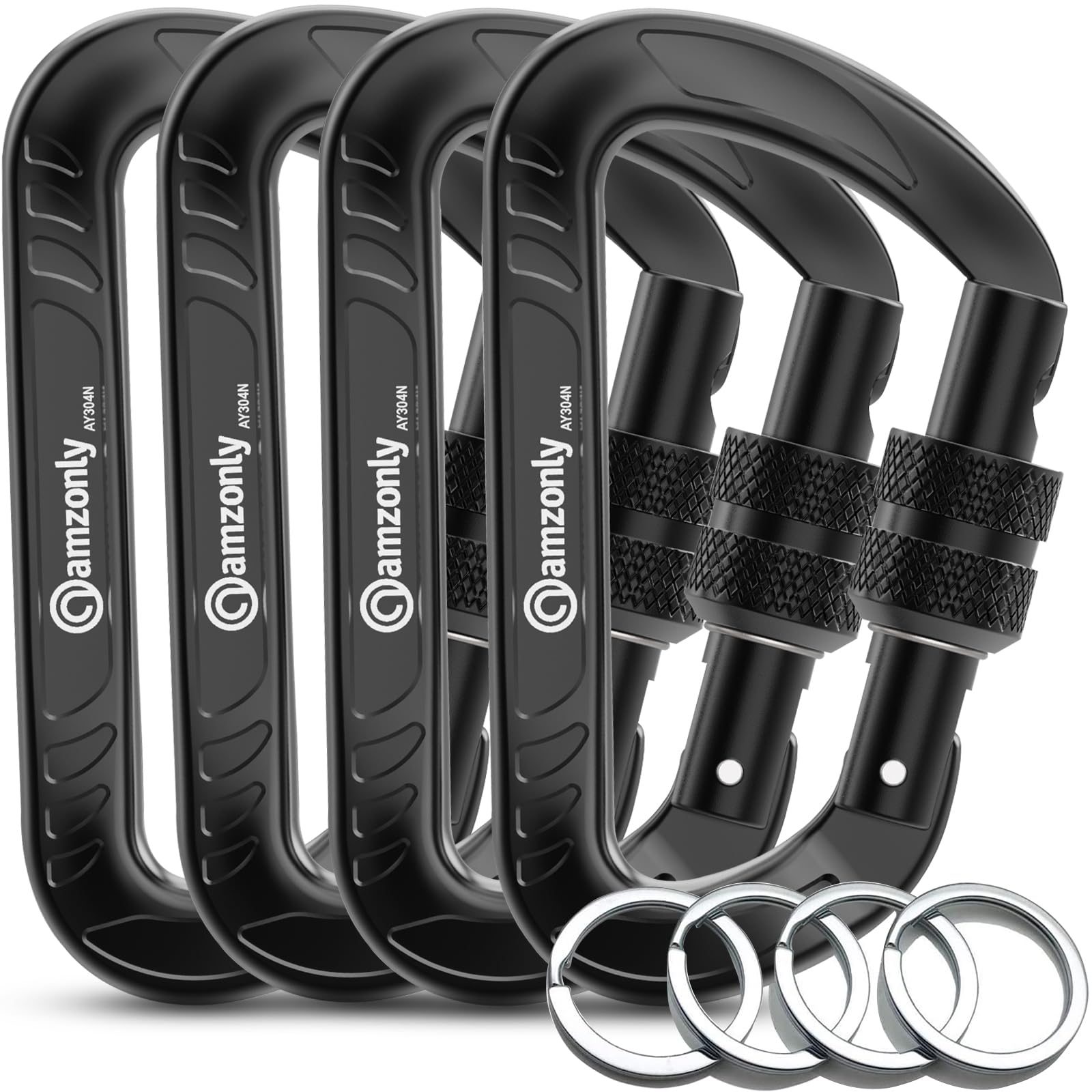 Amzonly 12kN Heavy Duty Carabiner Clip, Screw Locking Carabiner Clips for Securing Pets, Camping, Hiking, Hammock, Dog Leash Harness, Keychains Black, 4Pack