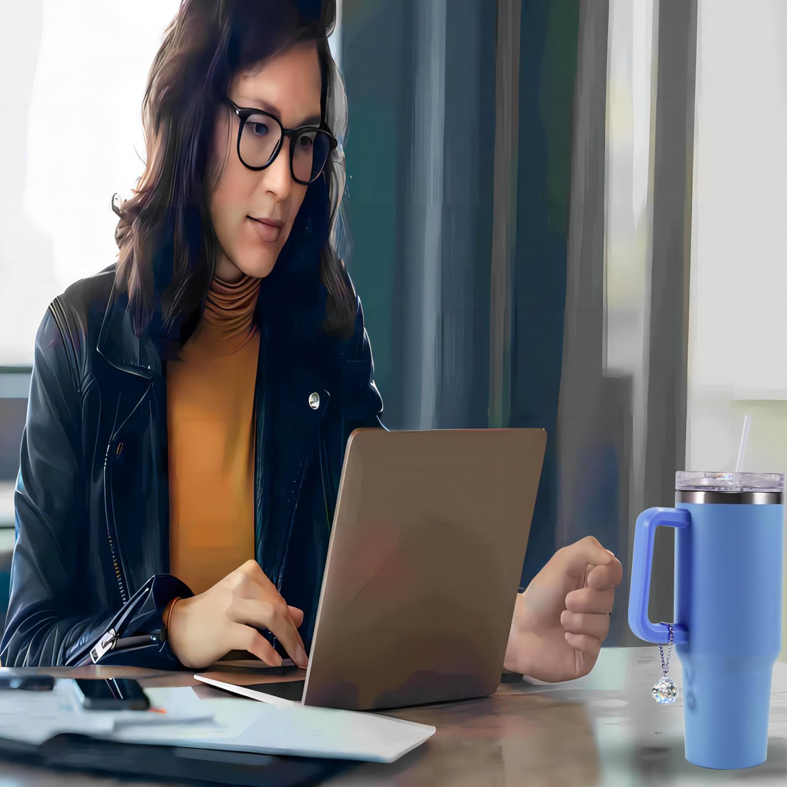 3:The shape of the crystal pendant is unique and can be various natural elements or abstract shapes. No matter which design you choose, you can blend the minimalist style of the Stanley Cup with the gorgeous crystal, showcasing a stunning visual effect.