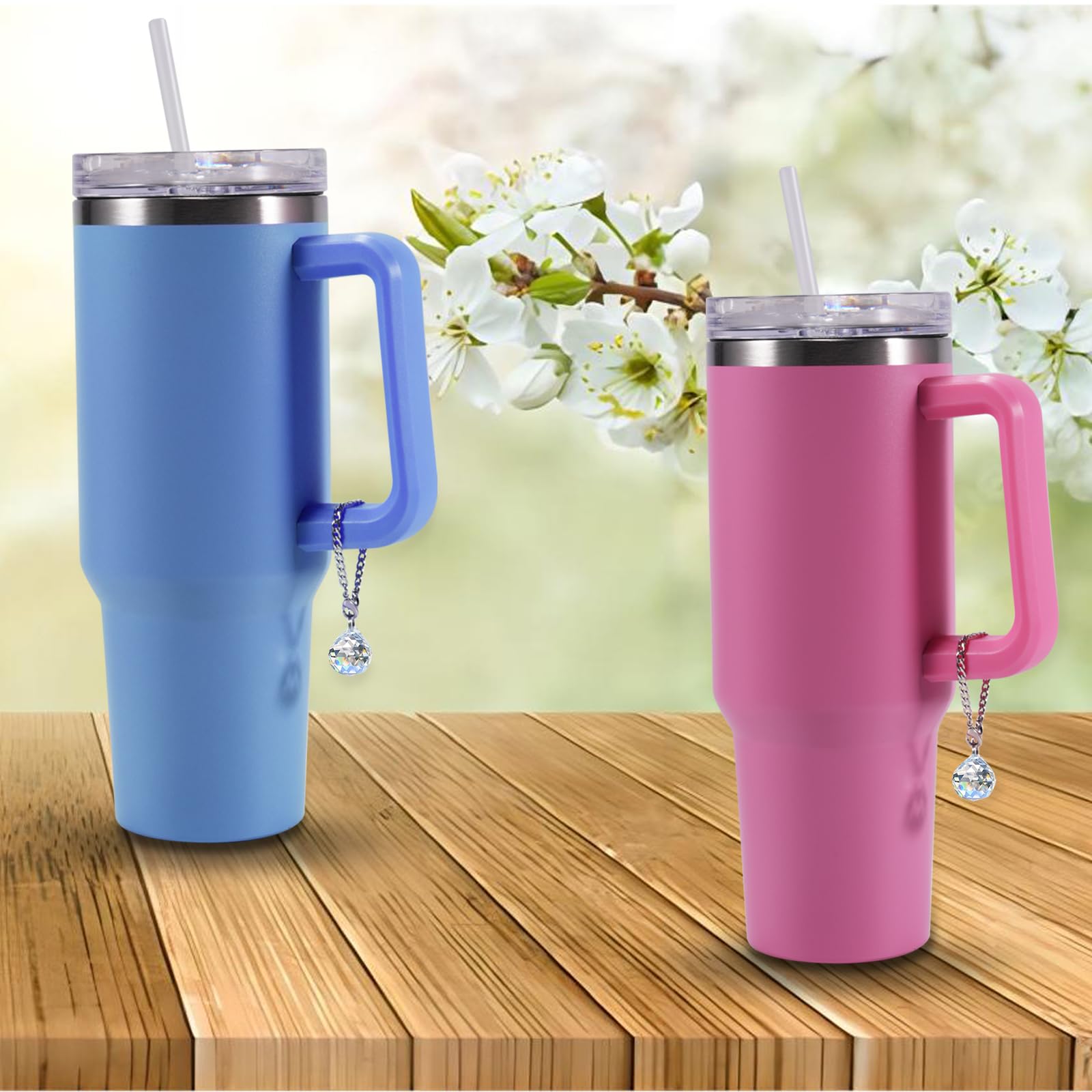 1:The design of the crystal pendant is exquisite, perfectly fitting the Stanley water glass with just the right size and shape. Its luster and transparency are breathtaking, adding a noble and luxurious atmosphere to the water cup.